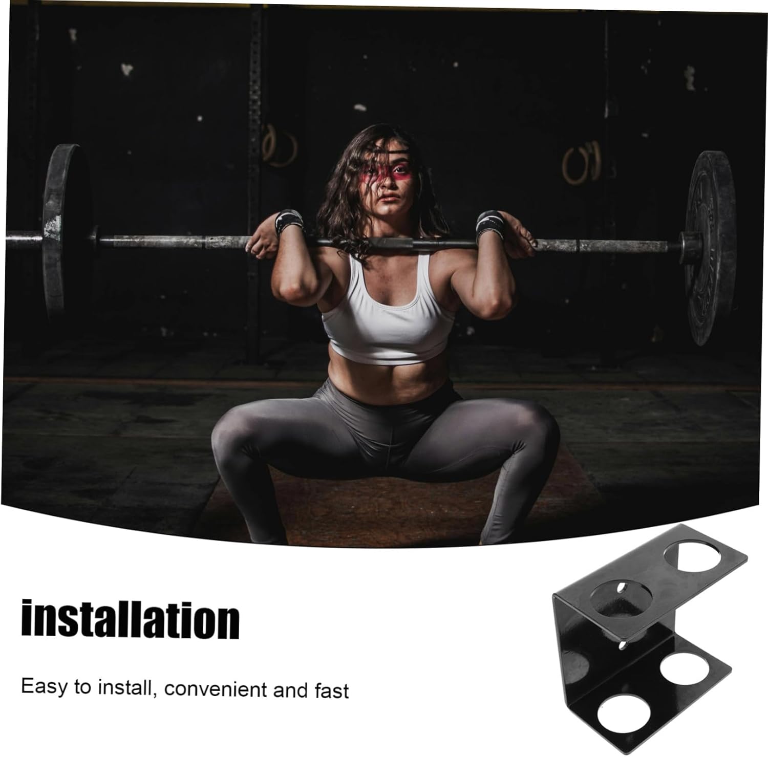 Package Include 1 x barbell rack Characteristics -Space-Efficient:Designed to be wall-mounted, this rack helps save floor space, keeping your workout area clean and organized weight plate holder -Quick To Set Up:With a straightforward installation process and clear instructions, users can set it up quickly and easily bar holder gym -Color:Black power rack barbell holder -Practical And Long-Lasting:it allows for the storage of multiple barbells, enhancing gym organization and ease of access weight storage -Extensive Range:Its high space efficiency makes it ideal for both home and commercial gyms, optimizing vertical storage wall mounted squat rack -Size:16.00X15.00X9.00cm/6.29X5.89X3.54in barbell stand -Multi-Functional:This versatile storage can also hold other fitness equipment, ensuring a well-organized gym environment dumbbell rack -Material:Steel gym essentialsGoods Informationweight plate storage Our wall-mounted barbell rack is not just for barbells; it's a versatile storage for various gym equipment.weight bar rack Whether you need to store weight plates, dumbbells, or other fitness accessories, this rack has you covered.bar holder Its design ensures durability and long-lasting use, making it a reliable addition to your gym