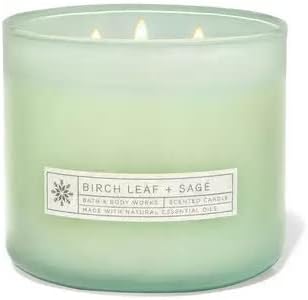 Bath & Body Works, White Barn 3-Wick Candle w/Essential Oils - 14.5 oz - 2021 Christmas & Winter Scents! (Birch Leaf & Sage)