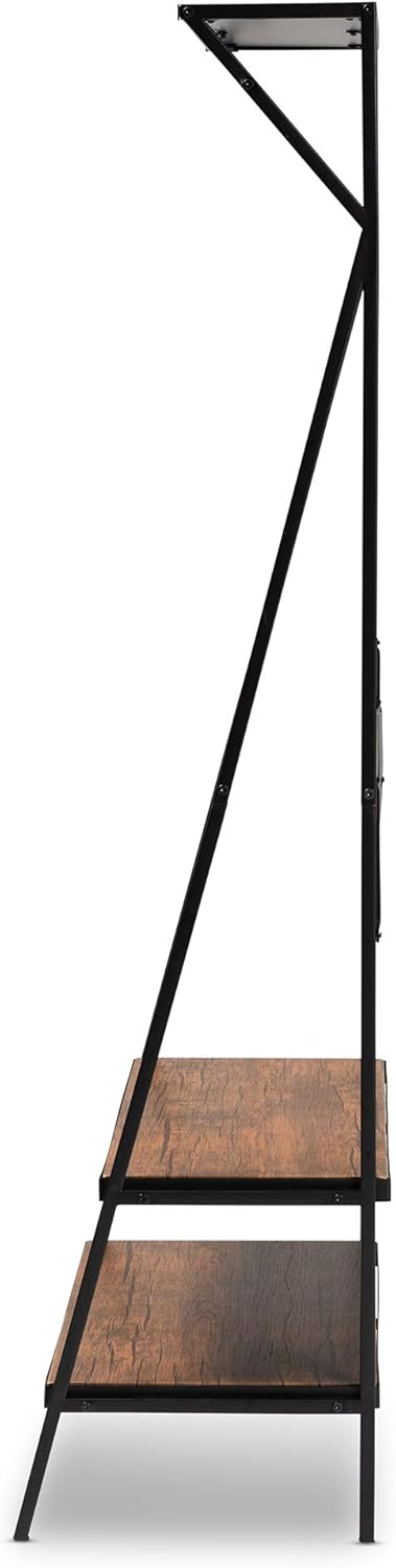 Add rustic style to your entryway with the Laima coat rack. This versatile piece combines seating and storage into one, making it an ideal option for optimizing your space. A durable black metal frame supports three shelves crafted from distressed wood. Hang coats and scarves on the top bar. Store shoes and bags on three shelves, one of which can also be used as a bench for putting on shoes. Functional and stylish, the Laima features a clean industrial design that will complement any space. The Laima coat rack is made in China and requires assembly.