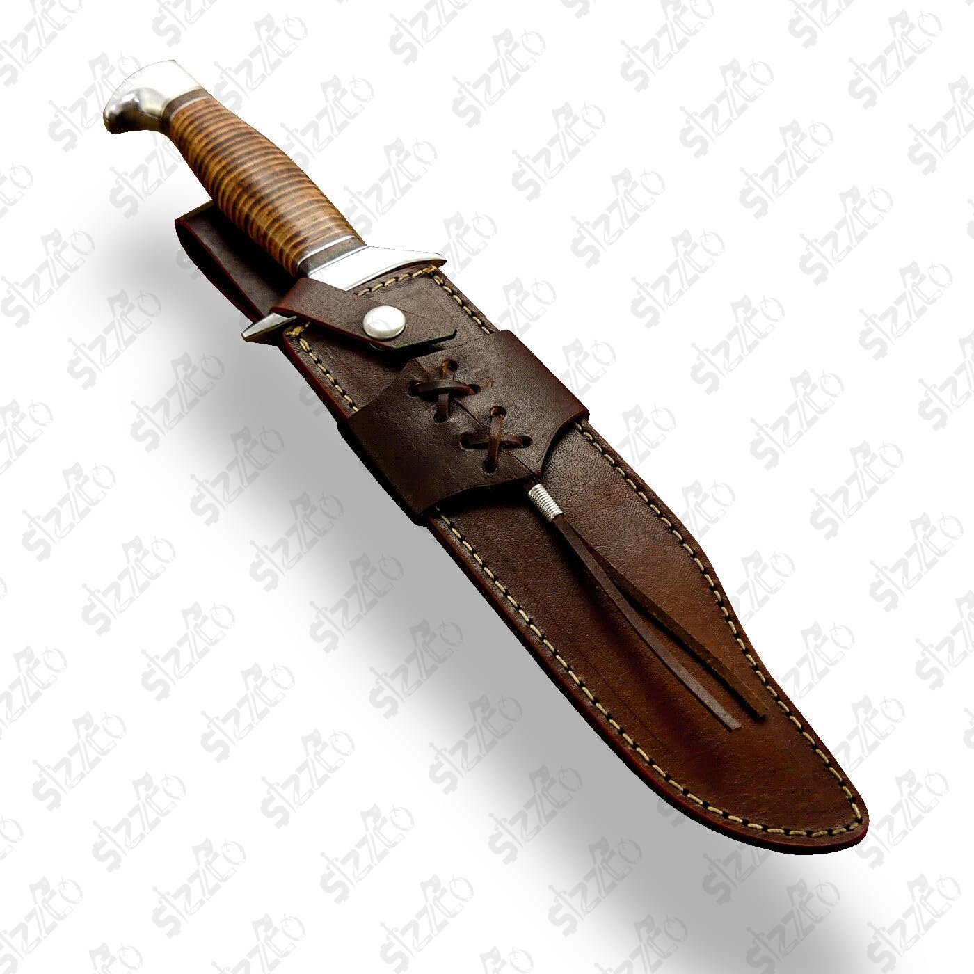 THIS IS A BEST QUALITY CUSTOM HANDMADE FORGED D2 STEEL KNIFE HUNTING BOWIE CAMPING SURIVIVAL KNIFE, BEST BIRTHDAY & ANNIVERSARY GIFT FOR HIM/HER FREE = (ORIGNAL COWHIDE LEATHER SHEATH WITH BOX)SIZE& MEASUREMENT:OVERALL LENGTH IS = 15.00" INCHES BLADE LENGTH IS = 10.00" INCHESHANDLE LENGTH IS = 5.0" INCHES YOU WILL NOT FIND A BETTER QUALITY HANDMADE KNIFE, ANYWHERE, FOR THE PRICE.TIPS TO CARE KNIFE 1. NEVER STORE YOUR KNIFE FOR LONG TIME IN LEATHER SHEATH. 2. LEATHER CAN ABSORB WATER, WHICH WILL RUST THE KNIFE.3. ALWAYS CLEAN THE BLADE AFTER USING WITH OIL. ๐งค Stacked Leather Handle with Stainless Steel Guard Every knife features a beautiful stacked leather handle, carefully shaped to offer a firm, non-slip gripโeven in wet conditions. The natural leather layers not only look elegant but also provide warmth and comfort in hand, allowing for extended use without fatigue. A polished stainless steel guard adds a layer of safety by preventing your hand from slipping forward, especially during forceful cutting or piercing. The combination of leather and steel offers a timeless, rugged aesthetic that reflects the traditional craftsmanship behind this knife.