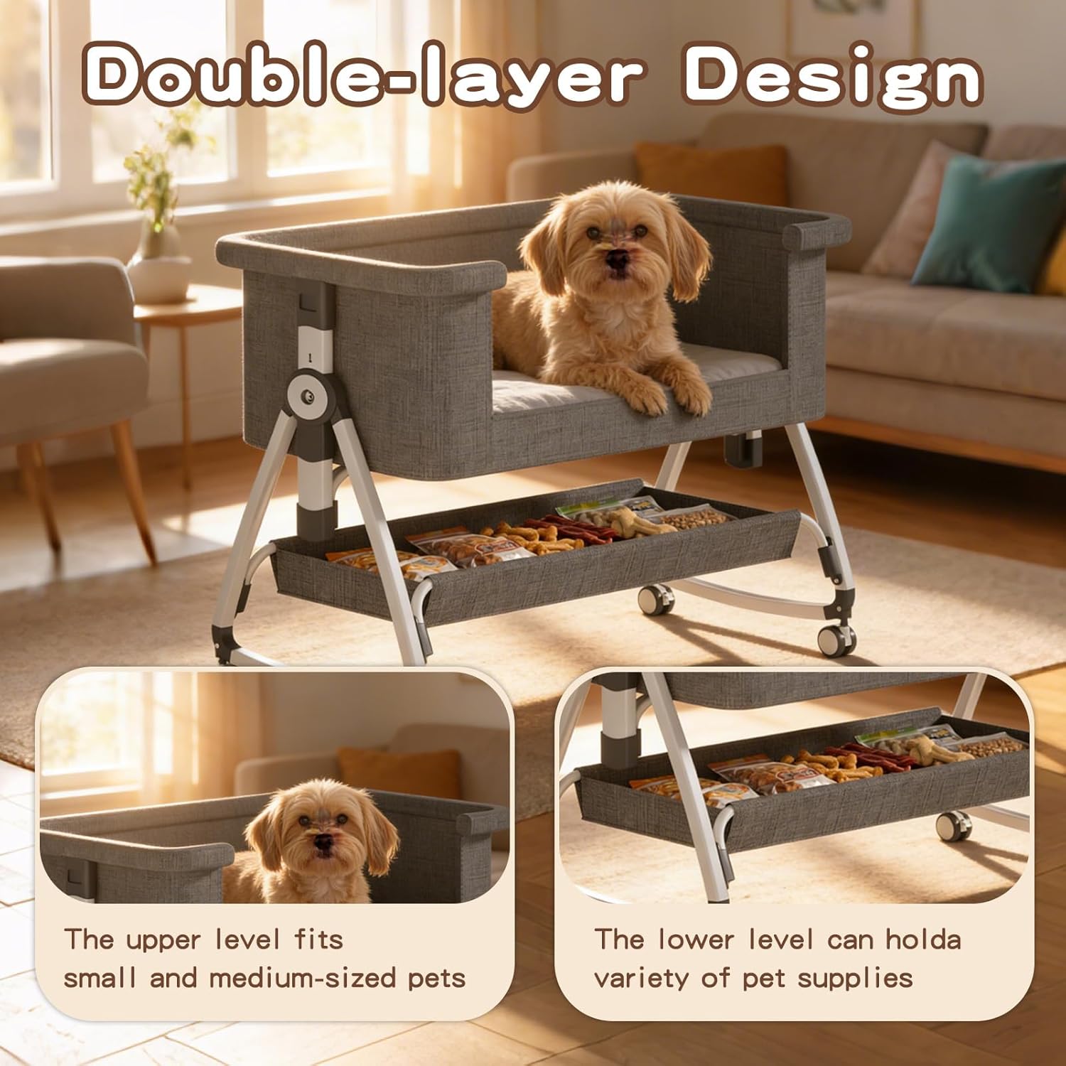 | Product Benefits | Allows pets to sleep close to owners, adjustable height, stable and secure, easy to clean, offers storage |