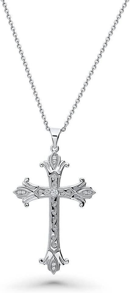 This cross pendant necklace serves as a sparkling silver testament to your faith and sense of style. Crafted with fine 925 sterling silver, nickel free. Set with premium grade cubic zirconia CZ. Lobster claw clasp. Imported.DISCLAIMER: CZ carat weights are approximate and provided as diamond equivalents. Intended for adult women.