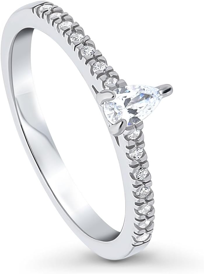 Celebrate special moments with this sterling silver engagement or promise ring, showcasing exquisite 0.3 to 0.4 carat cubic zirconia in emerald, oval, pear, princess, and round cuts. The perfect choice for wedding and anniversaries. Crafted with fine 925 sterling silver. Set with premium grade cubic zirconia CZ. Imported.DISCLAIMER: CZ carat weights are approximate and provided as diamond equivalents. Intended for adult women.