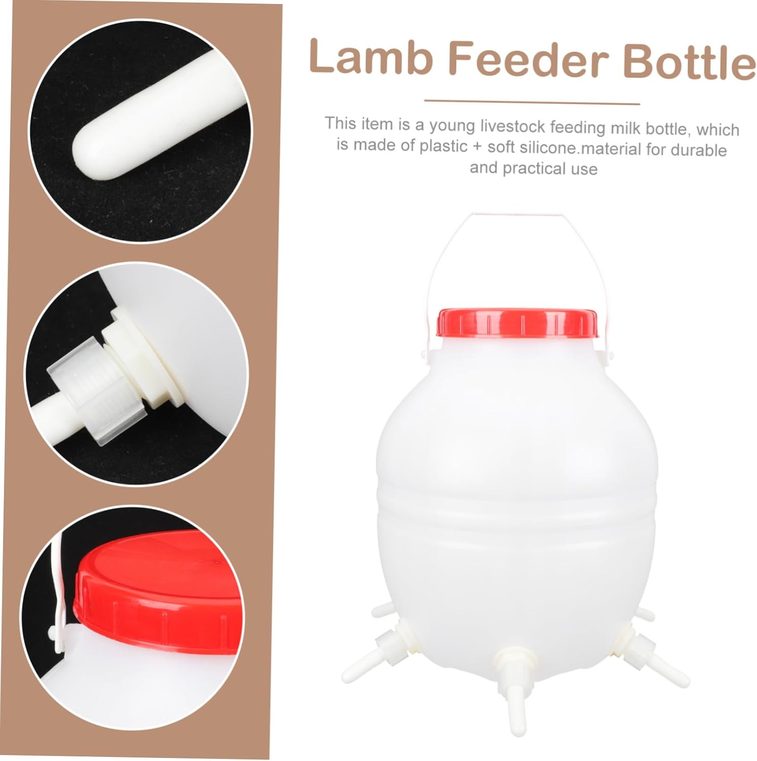 Package Include 1 x Lamb Milk Feeder 6 x nipples Features - Capacity: 8L lamb bucket nipples. - Size: About 32.00X23.00X23.00cm/12.58X9.04X9.04in lamb nursing bottle. - Color: Assorted Color lamb feeding bucket. - Material: Plastic + soft silicone Calf Lamb Feeding Bottle. - 8L capacity, sufficient for daily consumption of lambs and other animals sheep feeding bottles. - It comes with the smooth surface, simple and convenient to clean Lamb Milk Feeder. - The set includes enough nipples, which can meet your different needs Lamb Feeder. - The nipples has strong toughness, anti-biting, and it is convenient to feed your livestock lamb feeding supplies. - The nursing bottle is made of good materials, and for young livestock use lamb feeding bottles.Goods Descriptiongoat milk feeder It is one of the for you.lamb feeder bottle Are you looking for a professional, yet lamb feeding bottle? Are you in search of a sturdy, trustworthy tool that can do multiple jobs at once? , ! Our products must meet your needs