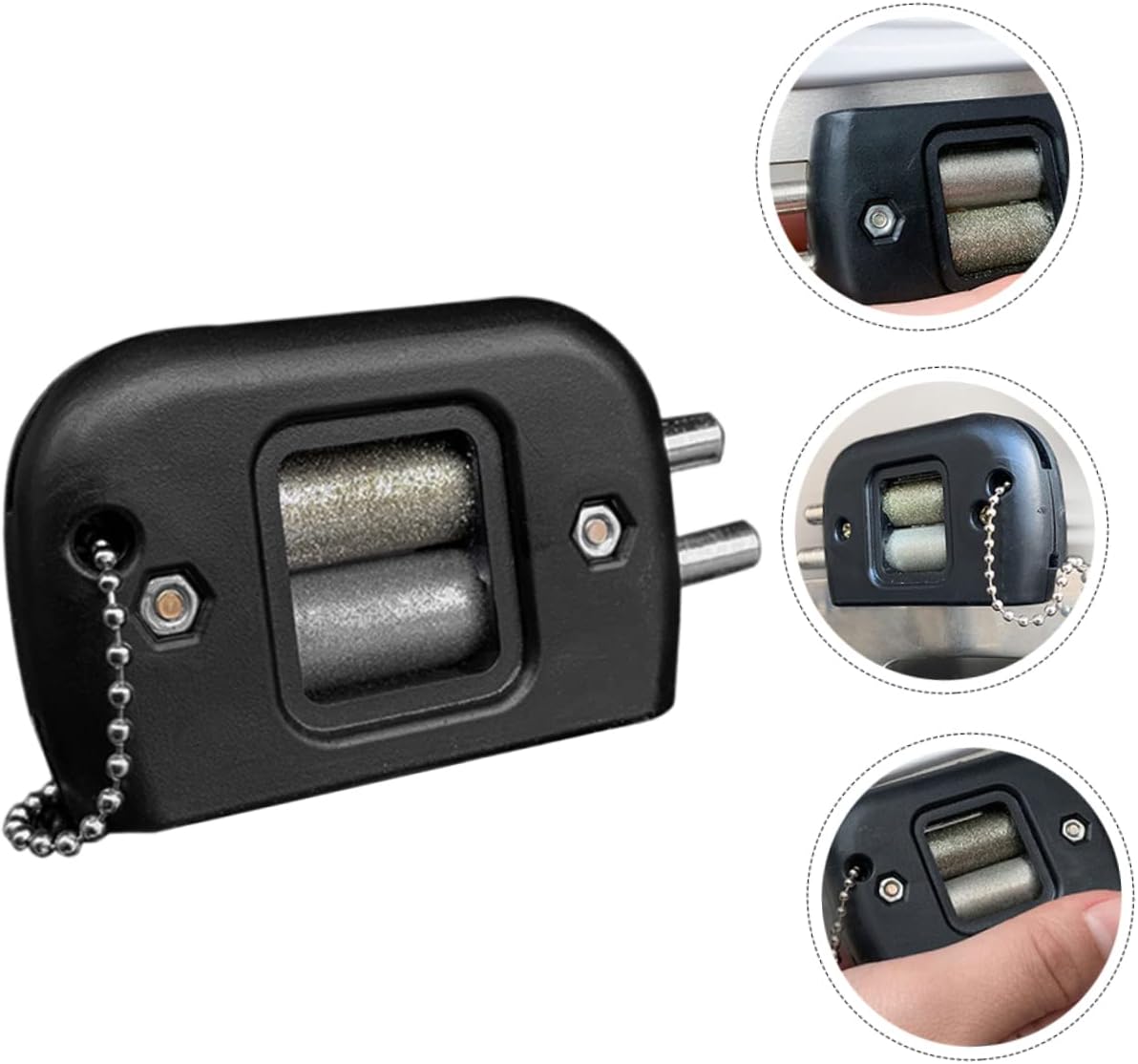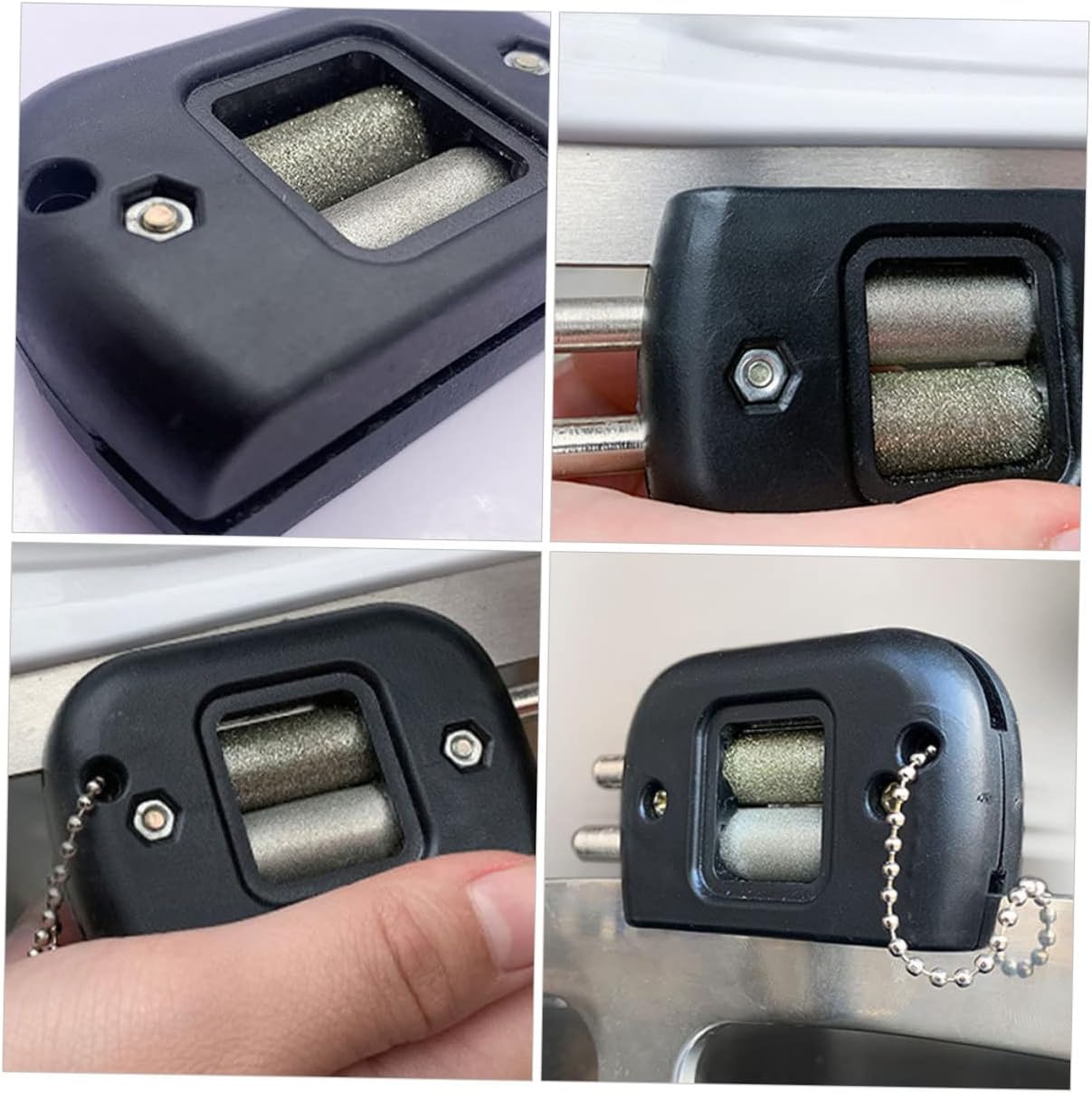 Package Include 2 x Ice Skate Sharpener Features -Material:ABS and diamond hand held skate sharpener -Color:Black hockey skates sharpener -Size:7.00X4.50X3.50cm/2.75X1.77X1 grindstone grinding tool. -Design for maintaining and keeping damaged edges or blades again within 10 seconds and no need to take off the skates skate sharpener. -The ice shoe sharpener is suitable for hockey player, skater, training and so on portable skate sharpener. -This product is a portable ice skate sharpener, easy to carry with the portable chain portable skate grindstone. -Can be the perfect gift for your friends who like hockey, and it can be very useful ice blades accessory. -With cloth bag for easy carrying, not taking up space when going out skate shoes conditioner.Goods Descriptionsmall skate grindstone If you' re a hockey player or avid skater, or just go to the rink a lot, this is a nice sharpener tool to keep your blades sharp.sharpeners It owns a portable key chain on tail, so it is convenient to carry the ice shoe sharpener out.convenient skate grindstone Both ends can be used.specialty tools It can be adjusted by the screw to ach the appropriate width
