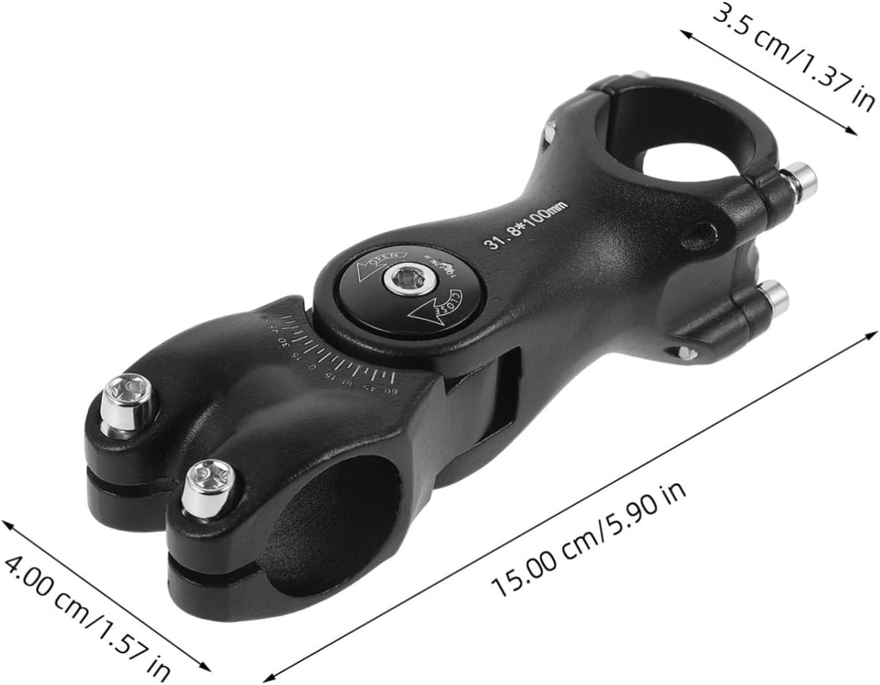Package Include 1 x Bike Stem Riser Characteristics -Size:15.00X4.00X3.50cm/5.89X1.57X1 road bike stem riser. -Note:Suitable for 31 bike bar risers. -Color:Black mountain bike riser -Material:Aluminum Alloy alloy handlebar stem - Made of high-strength and good aluminum alloy material for to use metal bike stem. - Simple color matching, beautiful and fashionable. It can last for a long time of use raised handlebars for bikes. - Simple installation and convenient operation, this mountain bike handlebar extender is very to use front fork stem. - This product increases handling stability and makes steering more flexible. Light and portable, easy to carry stem riser. - Suitable for most road bike, fixed gear bicycles, mountain bikes, downhill bike, track bike, etc handlebar stem.Goods Descriptionadjustable handlebar stem Suitable for most road and mountain bikes.raised handlebars for bikes Made of aluminum alloy materials with good workmanship, sturdy, wearable and anti- deformation.accessories for With smooth surface, better touching feel and texture.bike stem riser Easy to install, time and effort saving