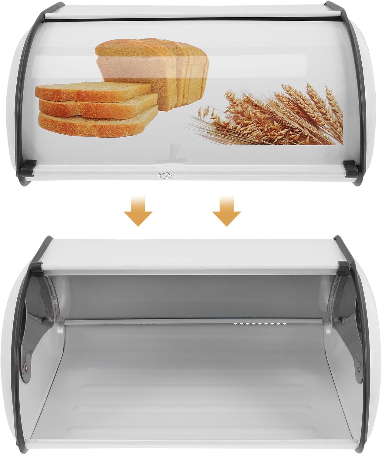 Package Include 1 x bread box Characteristics -Size:34.50X23.00X14.50cm/13.56X9.04X5.70in -Color:Assorted Color -Material:Iron, plastic -Product Info:Bread box -Suitable for storing bread, snacks, fruits, kitchenware, and other daily necessities household bread bin. -With large storage capacity design, keeps your kitchen well organized bread storage container. -With cover design, it can from entering and your bread, bringing you a good experience kitchen bread bin. -Smooth surface, fine craftsmanship, strong and for long serving life desktop bread bin. -An essential bread box for kitchen, home, coffee shop, bakery, shopping mall, etc bread holder.Goods Informationbread storage bin It is perfect for storing different kinds of breads.household bread bin This bread storage box is manufactured with , so that it can serve you for many years.kitchen bread container Fine workmanship, not easy to wear, practical use.bread holder for kitchen counter can its durability and practicability