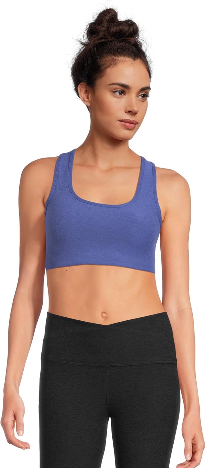 Less is definitely more when it comes to this forever-in-style Beyond Yoga Spacedye Simplicity Bra. It is crafted from a polyester blend fabric that provides long-lasting comfort and durability. Offering medium support, this wire-free bra is styled with a racerback detail, an interior elasticized hemband, a scoop neckline, and non-adjustable straps. Appropriately named the simplicity bra, this sports bra provides comfortable support and is longer, so you can pair it with anything from active bottoms to your favorite sweats. 87% polyester, 13% elastane. Machine washable.