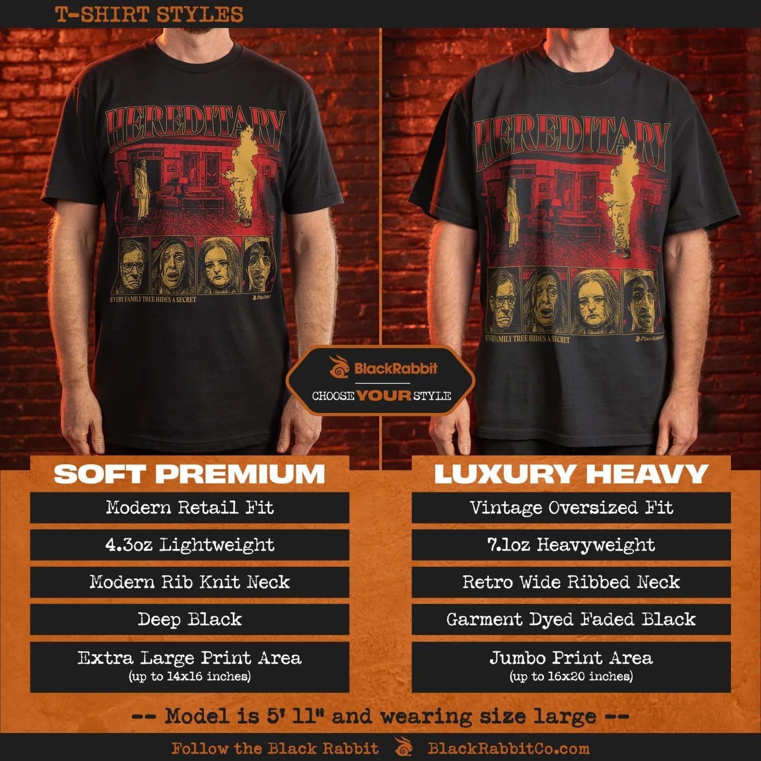 Soft Premium Tee:Next Level 3600 - Softstyle, modern retail fit4.3 oz., 100% preshrunk combed ringspun cottonXL Print - 40% wider than industry standardBlank item imported; art designed, processed, and printed by us in Louisville, KYLuxury Heavy Tee:Black Rabbit 101 - Heavyweight, oversized fit7.1 oz., Garment Dyed, 100% preshrunk combed cottonJumbo Oversized Print - 30% Larger than our standard XL PrintBlank item imported; art designed, processed, and printed by us in Louisville, KY Faded Crewneck Sweatshirt:Black Rabbit 301 - Midweight, relaxed fit9.4 oz. Preshrunk, Garment Dyed 80% cotton, 20% PolyesterXL Print - 40% wider than industry standardBlank item imported; art designed, processed, and printed by us in Louisville, KY Luxury Hoodie:Black Rabbit 401 - Midweight, oversized fit9.4 oz. Preshrunk, Garment Dyed 80% cotton, 20% PolyesterJumbo Oversized Over-Pocket Print - 30% Larger than our standard XL PrintBlank item imported; art designed, processed, and printed by us in Louisville, KY