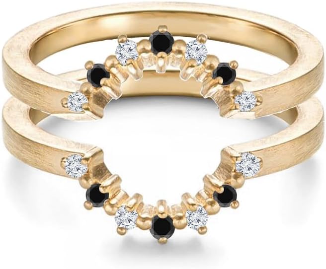 This Enhancer Guard Crafted in 925 Sterling Silver, available in 14K White, Yellow and Rose Gold Plating. Round Cut simulated Black & White Diamond set in prong setting.