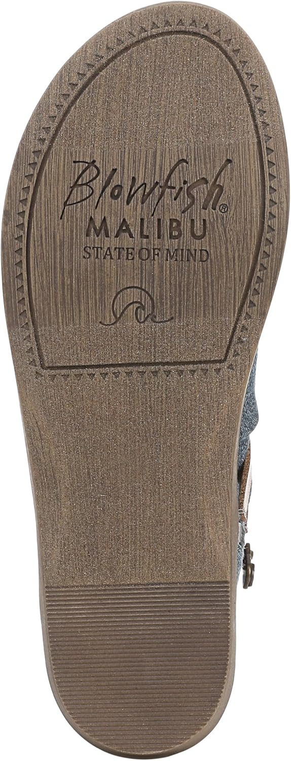 Meet your sandal staple: the Denver Sandal from Blowfish Malibu. Features include an inside zip for easy on/off and decorative straps. VEGAN. Faux-leather or fabric upper. Inside zipper entry. Hooded upper. Decorative straps. 3/4-inch heel.