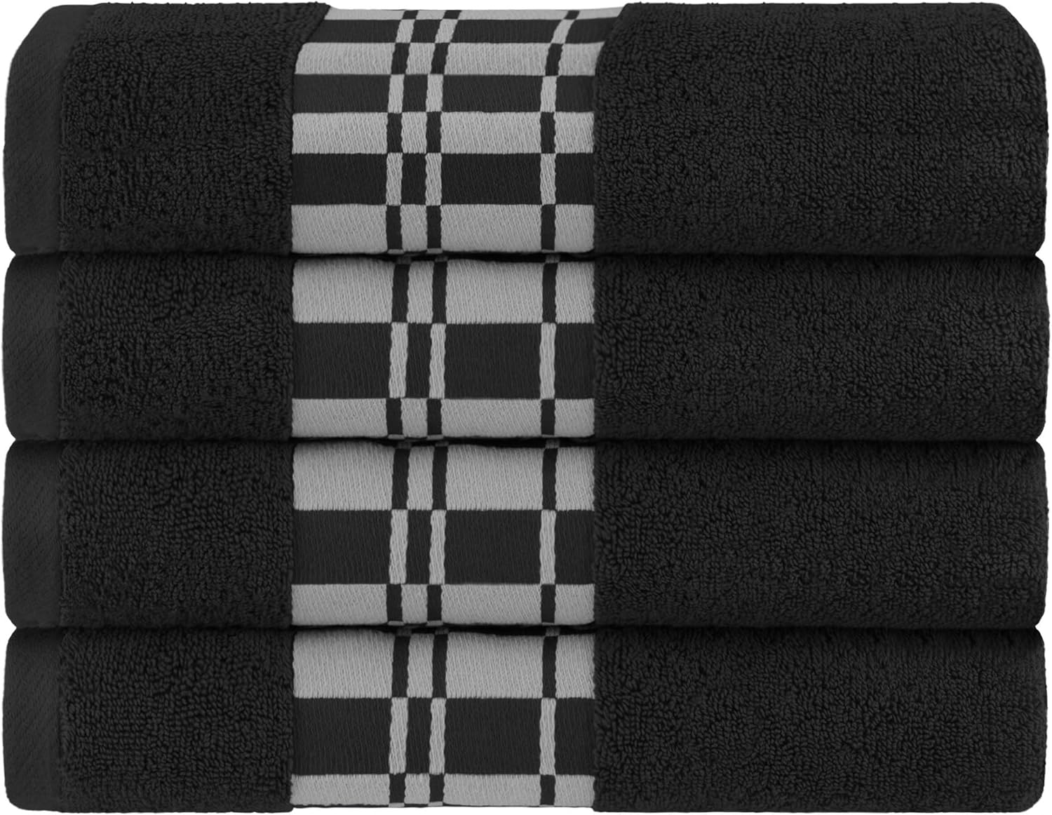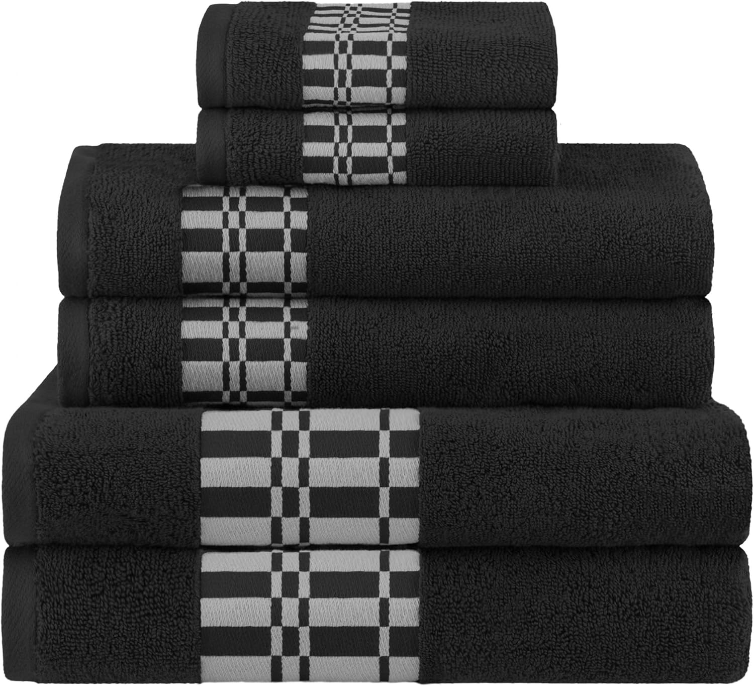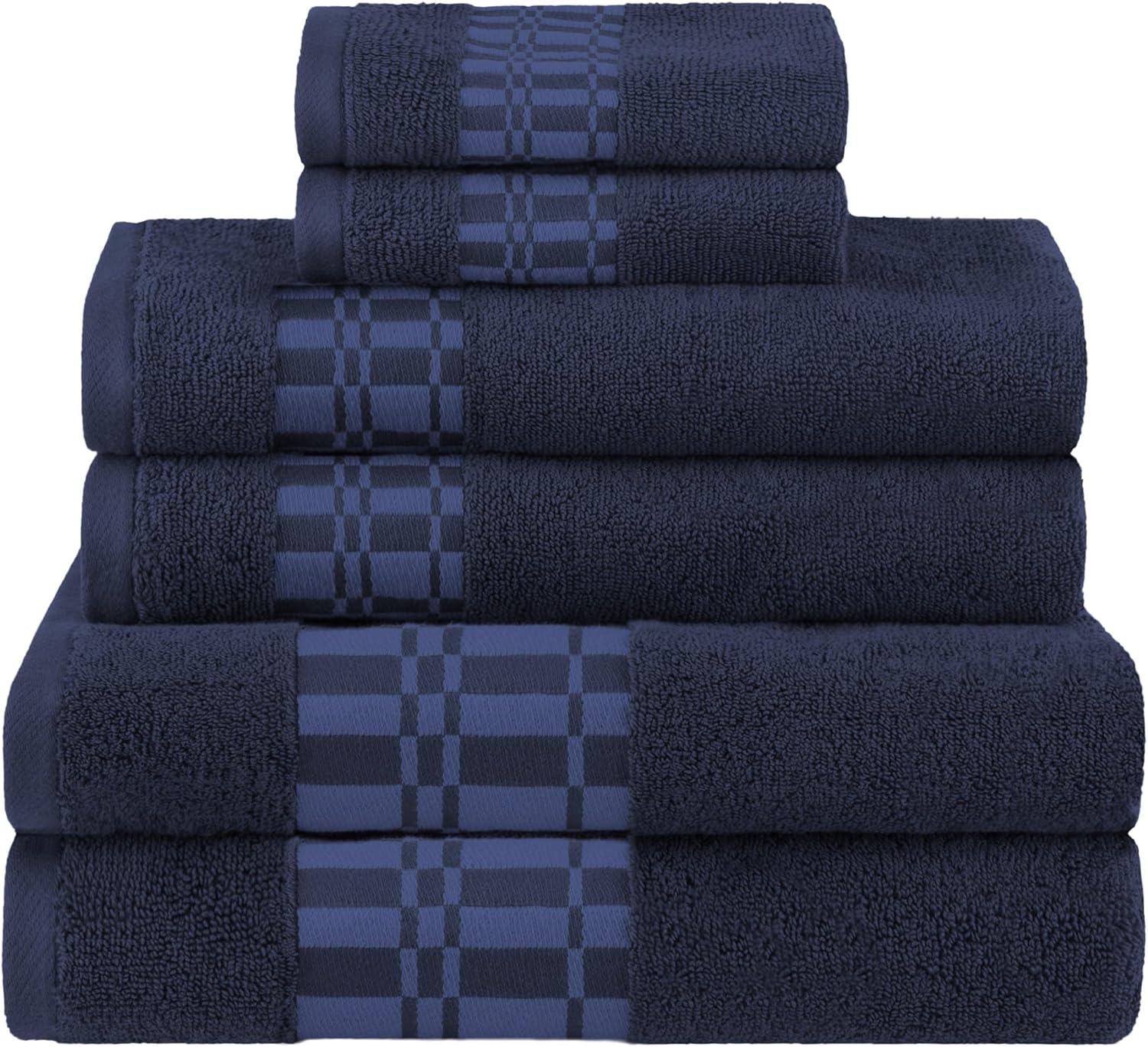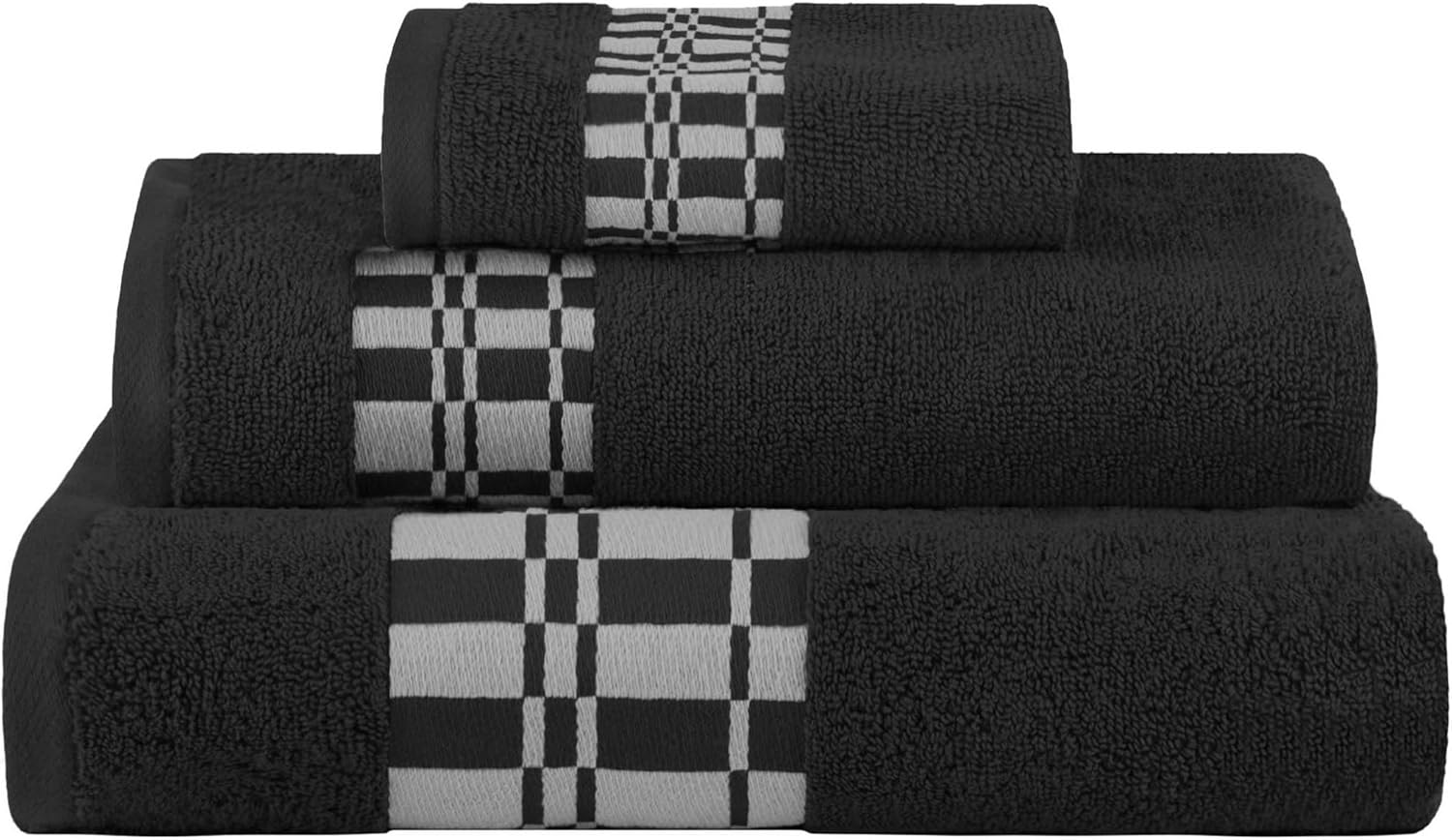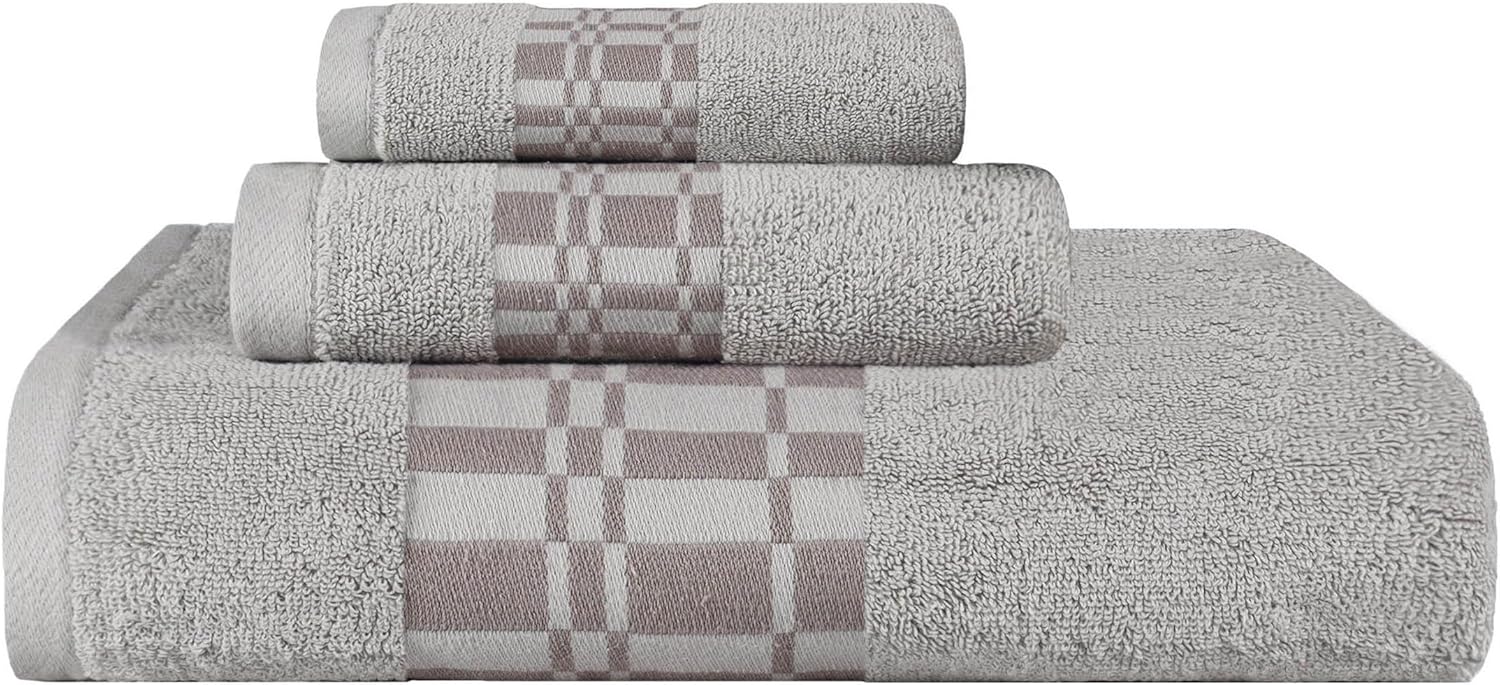 Create a lively modern look in your master or guest bathroom with the Cotton Geometric Border Bathroom Towel Set by Blue Nile Mills. Our medium weight cotton towels have a 2 ply thickness for comfort and versatile absorption, perfect for beach days, poolside, or as an everyday bathroom essential. The plushness of these fluffy towels sop up moisture effortlessly, keeping you warm and dry. Featuring a classic geometric dobby border, these delightful towels are available in a variety of colors to match your bathroom decor.