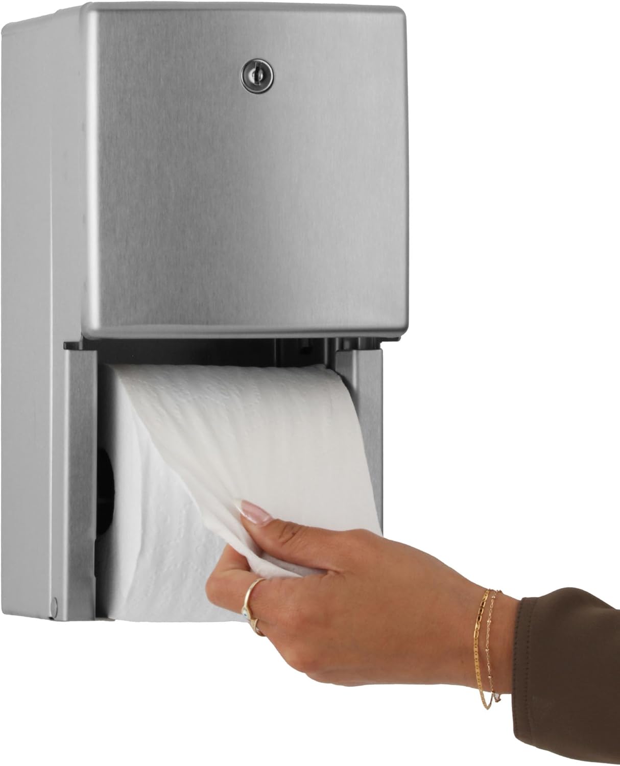 Product Description Introducing the Bobrick Surface-Mounted Multi-Roll Toilet Paper Tissue Dispenser, Satin-Finish Stainless Steel (Model B-2888), the perfect solution for maintaining a well-stocked and hygienic restroom environment in commercial, institutional, and public spaces. This dispenser combines functionality, durability, and a sleek design to meet the needs of high-traffic restrooms while ensuring user satisfaction and ease of maintenance. Crafted from high-quality Type 304 stainless steel, the Bobrick B-2888 boasts a satin finish that enhances its resistance to corrosion and wear, ensuring long-lasting performance even in demanding environments. The all-welded construction adds to the unit's robustness, providing a sturdy and reliable fixture that can withstand frequent use. The dispenser's front door is designed with a seamless, one-piece construction, adding a touch of elegance and simplifying cleaning and maintenance. One of the standout features of the Bobrick B-2888 is its automatic roll replacement mechanism. The dispenser holds two standard-core toilet tissue rolls, each up to 5 ¼ inches in diameter (1,800 sheets). When the bottom roll is depleted, the extra roll automatically drops into place, ensuring that toilet paper is always available to users without the need for manual intervention. This feature is particularly beneficial in high-traffic restrooms, where maintaining a continuous supply of toilet paper is essential. Security and theft resistance are key considerations in the design of the Bobrick B-2888. The unit is equipped with heavy-duty, one-piece molded ABS spindles that are securely retained in the dispensing mechanism when the door is locked. This theft-resistant design helps reduce maintenance costs and ensures that toilet paper remains available for users. The stainless steel door is secured to the cabinet with two rivets and features a tumbler lock keyed like other Bobrick washroom accessories, providing easy access for authorized personnel while keeping the contents secure. Installation of the Bobrick B-2888 is straightforward and versatile, making it suitable for various wall types, including partitions, plaster, drywall, and more. The unit is designed for surface mounting and comes with detailed installation instructions, ensuring a secure and stable attachment. For added convenience, the dispenser is ADA compliant, making it accessible to all users, including those with disabilities. From the Manufacturer Surface-mounted multi-roll toilet tissue dispenser shall be constructed of type-304 stainless steel with satin finish and all-welded construction