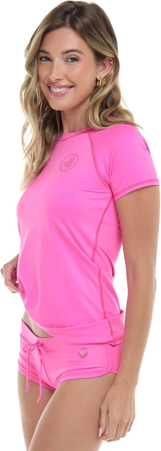 Ride the waves in style with our versatile In Motion Rash Guard Top, designed for women of all ages who embrace the spirit of surf culture. Featuring a short sleeve design with flat lock seams and a breathable crew neck, this top is crafted from smooth microfiber fabric with UPF 50 protection to shield you from harmful sun rays. It combines sleek, functional style with quick-dry materials, ensuring you stay comfortable and protected during any water adventure. The short sleeves provide easy mobility while the fitted silhouette flatters your shape, making it ideal for exhilarating days on the waves or relaxing at the beach. With this rash guard, you’ll be ready for everything from surfing to soaking up the sun. Body Glove swimwear offers a wide array of mix-and-match options, allowing you to pair this top with your favorite bikini or swim bottoms to create your unique surf style. Experience the ultimate blend of performance, comfort, and quality with our women’s Rash Guard Top. Visit the Body Glove store on Amazon to explore our full collection of women’s swimwear and more!