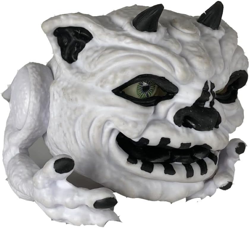 Bog-O-Bones and Blobkin haunt the No Bog Lands in the valley of Doom, no Boglin dares to set hand or tail there.So treacherous and evil are these two that they are known to steal small boglins and carry them off to the Valley, a very inhospitable place filled with dread and woe.For this reason, every Halloween young Boglins stay indoors and leave carved pumpkins on their door steps to try and trick Blobkin and Bog-O-Bones into stealing their jack-O-lanterns and leaving them alone. The jack-O-lanterns are often filled with sugary candies that send Blobkin and Bog-O-Bones into fits of laughter which can be heard for miles around the Bog.Created by Tim Clarke, Maureen Trotto and Larry Mass, Boglins are the ultimate in gross-era toys from the 1980s. Back by popular demand, Boglins are the same collectible toys you grew up to love. Fresh content for these Boglins toys is in the works for all fans to enjoy, including many improvements in material.Alas, Boglins are back!This toy arrives contained in his in cage: L: 8” x W: 7.75” x H: 8.25” – perfect for displayWith super stretchy skin, Bog-O-Bones features movable eyes and mouthGlow-in-the-dark eyes and skin make this toy interactive day or nightMade with a rubber-like material that is also recyclableGreat for kids 5+ and collectorsAlso available: Crazy Clown and Blobkin – Collect all three Dark Lords!