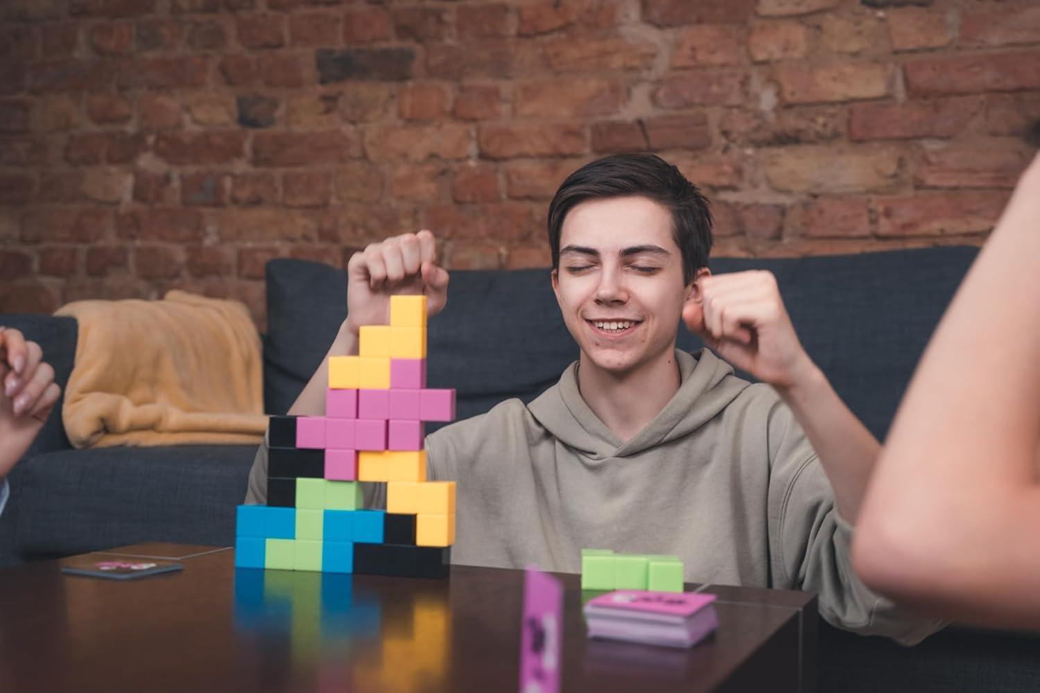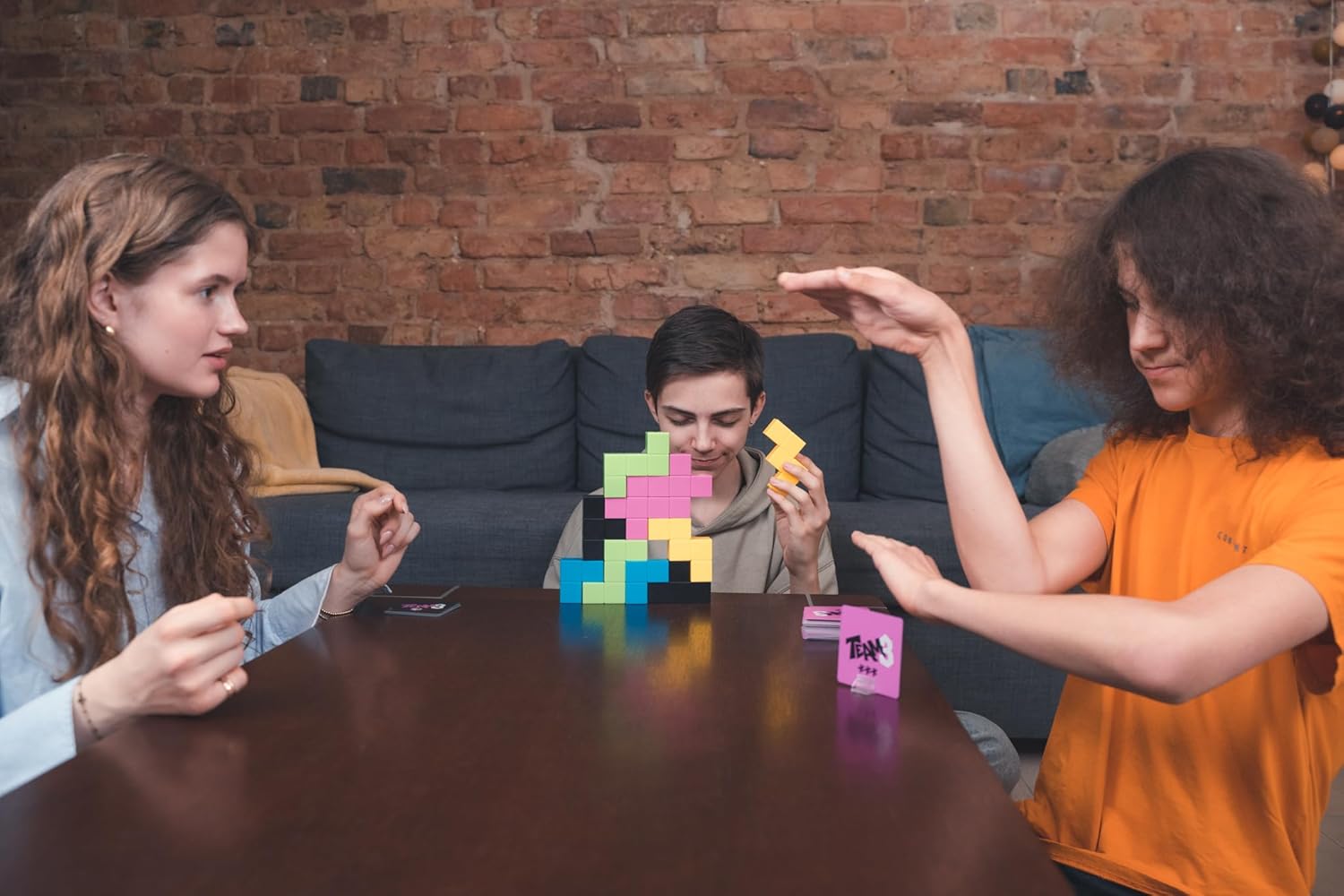 team3 is a cooperative game that delights both players and spectators! Players must work together to build a structure using 3D pieces as fast as possible. But there is a catch, team3 is played in teams of three players, with each player taking on one of three special roles: the player who can't speak, the player who can't see, or the player in the middle. Each role requires different skills, and this creates a very engaging game full of discoveries and challenges. There are two different set's of team3 Pink and green. Each comes with its own set of blueprints and a mini expansion. Mini expansions for team3 Pink is called dimension tension, for team3 green - mind merge.