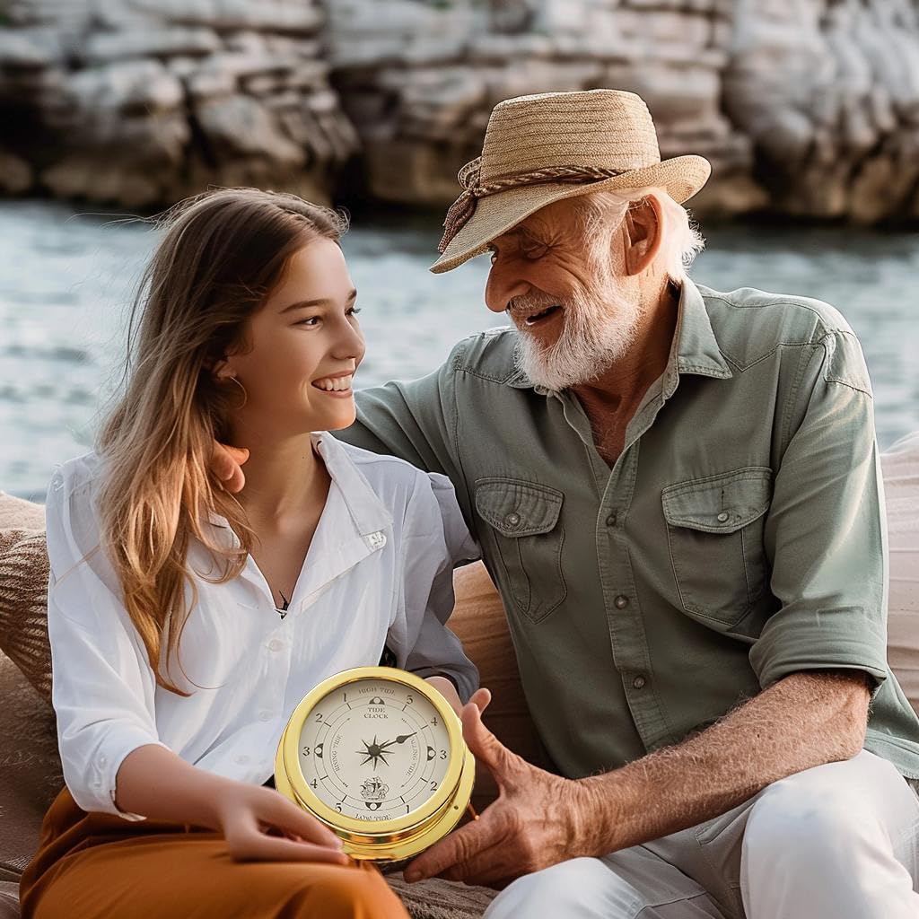 The tides operate on moon time, where each tidal day has 24 hours and 50 1/2 minutes, so high tide and low tides do not occur at the same hour each day. The hand of the tide timer easily shows how many hours until the next high or low tide in your area. Tide clocks are recommended for use on both coasts of the United States and Canada. In the Atlantic, they never need to be adjusted. In the Pacific Ocean, including Hawaii, they need to be calibrated periodically. Tide clocks do not operate in the Gulf of Mexico. Features: Name: Tide Clock Large numbers make it easy to read Silent non-ticking easy to hang Clear to read, Special and elegant design meet all your decoration need. Stylish retro wall clock. Easy to Hang. Decorate your office, living room, guest room, or dining room with this sophisticated clock Packing List: 1x Brass Nautical wall Clock Prompt description: 1.Please check the size and color before buying. 2.Please note that different monitors may cause slight colors,please understand the difference.