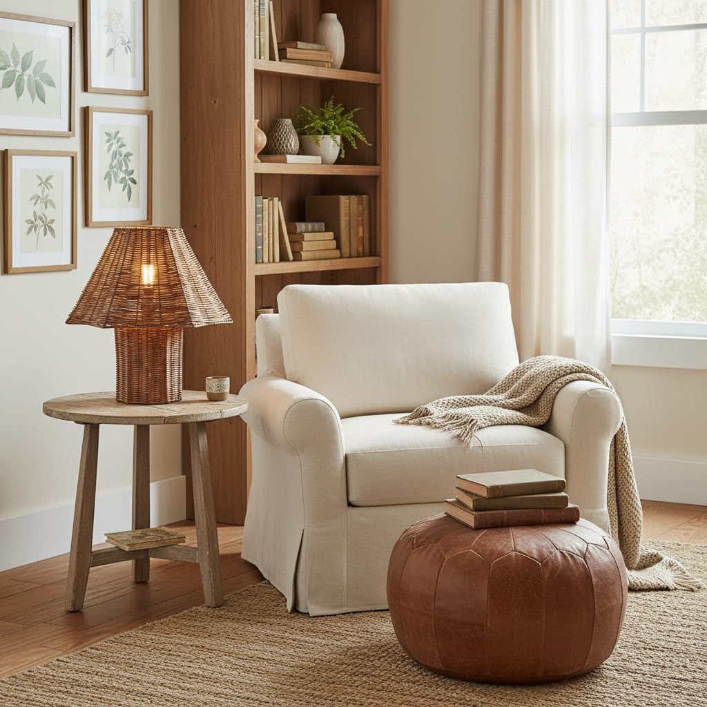 Bring warmth and texture into your space with this compact rattan table lamp, designed to provide soft ambient lighting while enhancing the look and feel of your home. The open woven rattan shade gently diffuses the included 5W LED bulb, producing a 2700K warm white glow that feels inviting rather than harsh. The light is bright enough to create comfortable visibility, yet subtle enough to support relaxation, evening routines, and a calm atmosphere. This lamp works especially well as a bedside lamp, where its warm light helps wind down at night without overwhelming the room. It is also a great fit for living rooms, entry tables, or side tables, where it adds visual interest and a cozy accent without taking up too much space. The natural brown rattan pairs easily with a wide range of decor styles, from casual and organic to modern and transitional, helping the lamp blend naturally into your home decor. Measuring 12 inches high with a 12-inch wide shade and a 5.5-inch diameter base, this small table lamp is ideal for nightstands and smaller surfaces. It features a black cord with an inline on/off switch for easy operation and is compatible with smart plugs or smart bulbs (sold separately) for added flexibility.