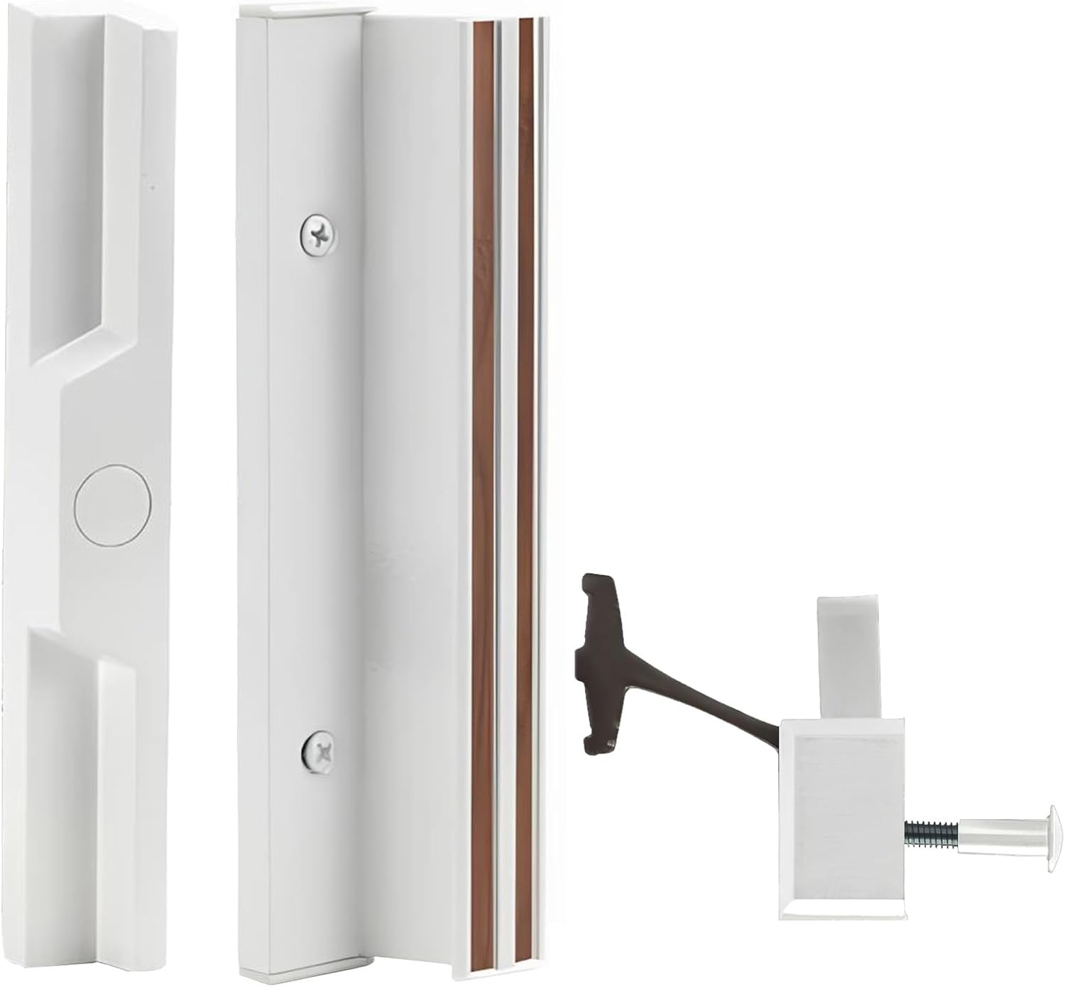 The Brixwell Patio Door Handle Assy No Key is designed for sliding patio doors and provides a functional grip for opening and closing. Made from aluminum with a black finish, this door handle works with universal door handing, allowing use on both left and right sliding doors. The hole centres measure 3-15/16", making it compatible with many standard patio door setups. This handle is a part of patio door hardware replacement solutions and is designed for replacing older or damaged handles. It includes mounting hardware for installation on sliding glass doors. The handle projects a depth of 1-5/64" from the door surface and has a 1-15/32" backplate length, offering a comfortable grip for interior or exterior use. It can be used as a patio door pull, sliding patio door handle, or exterior door latch. Whether you need a patio door handle replacement or are upgrading your sliding glass door hardware, this option offers compatibility across multiple door types. Suitable for patio doors in residential or commercial spaces, this assembly fits most systems that accept internal door handles or patio door pulls without key functionality.