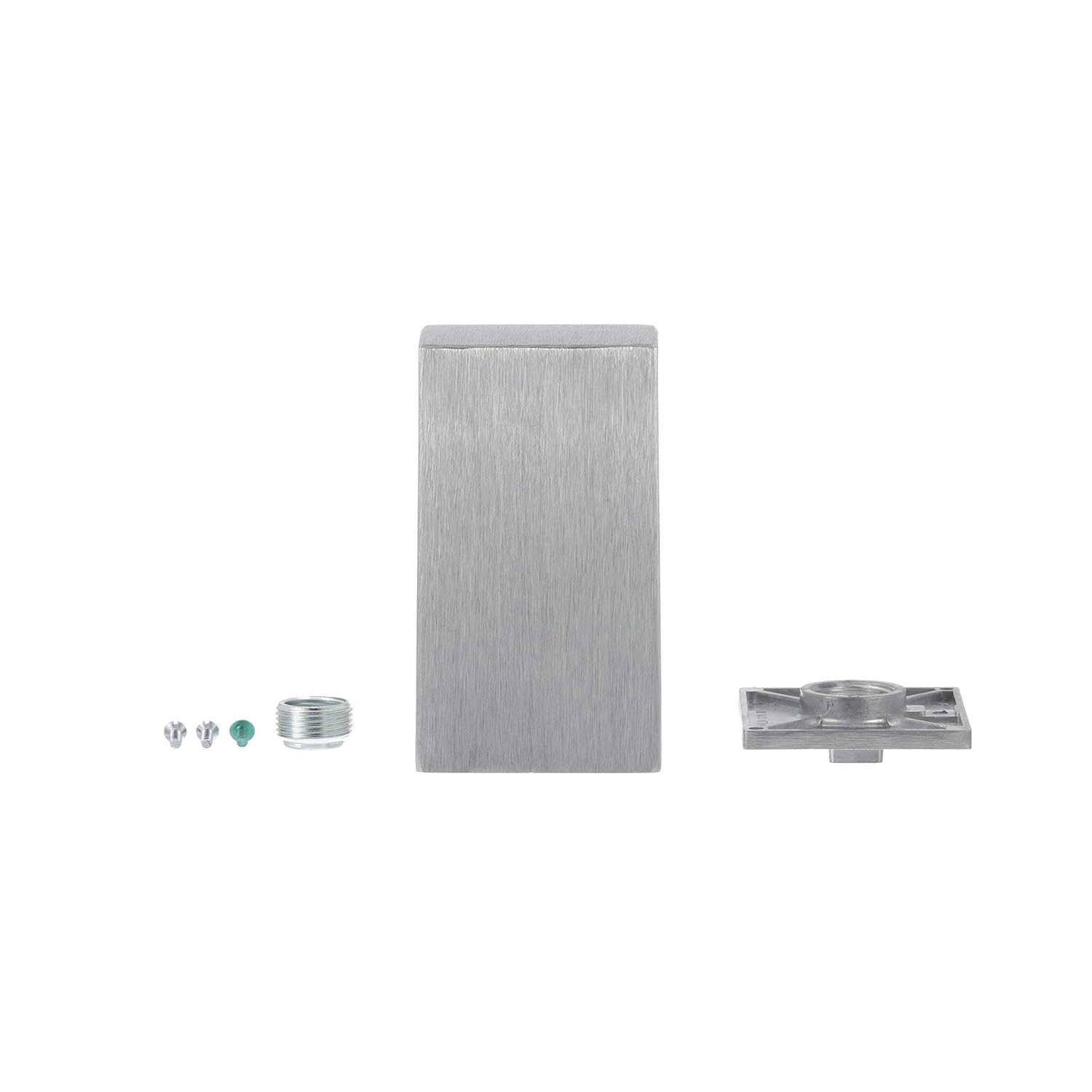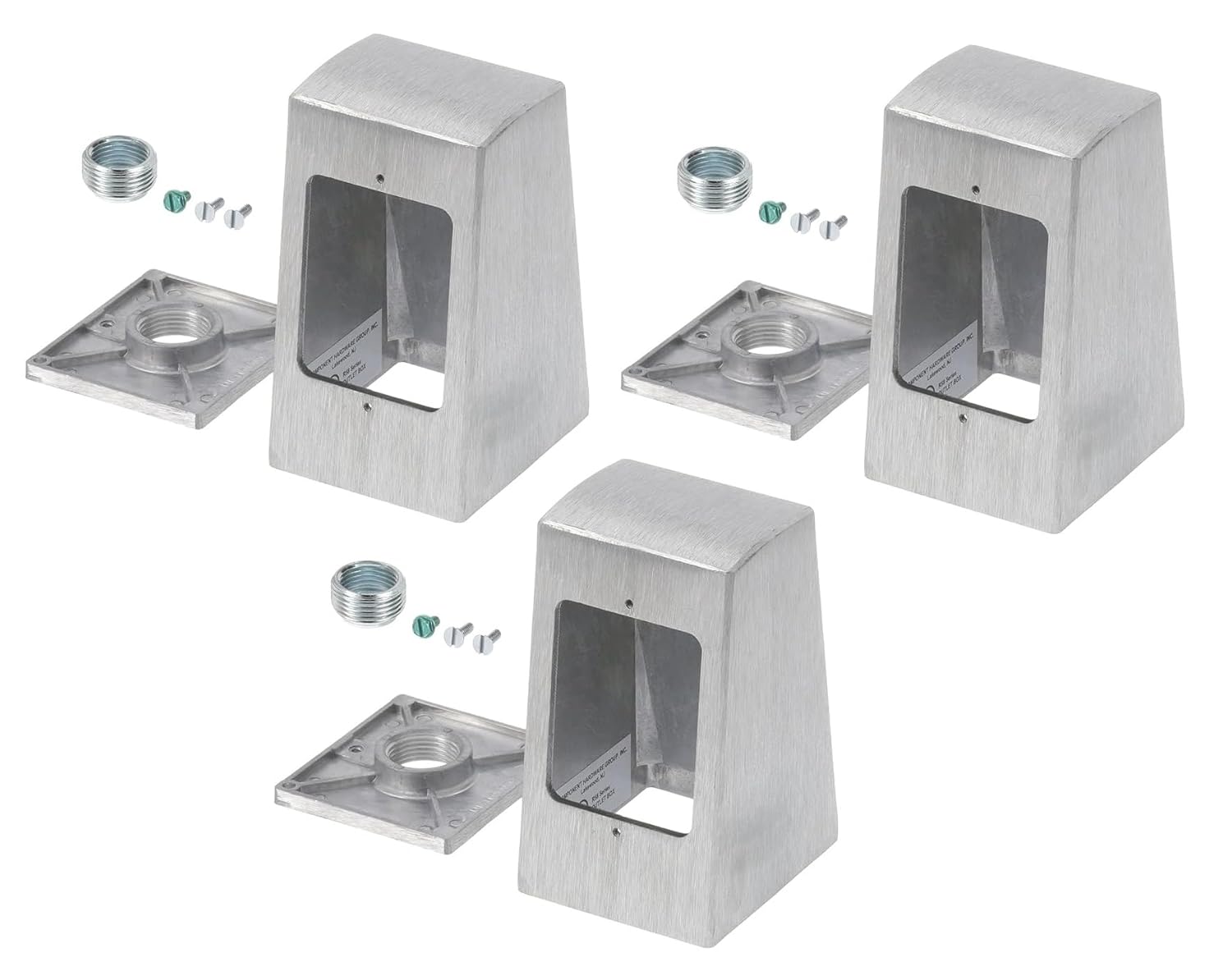 The Brushed Aluminum Single Face Pedestal Outlet Box is designed to provide a convenient surface-mounted outlet for countertop appliances. It features a single cutout that accommodates one duplex receptacle or switch. The brushed satin finish matches stainless steel countertops, providing a sleek and cohesive look. Suitable for 3/4" NPS or 1/2" NPS conduit (adapter provided), it also comes with a ground screw for added safety during installation. UL listed #48 C6 for quality assurance and compliance. Enhance your countertop functionality with this versatile and stylish outlet box.