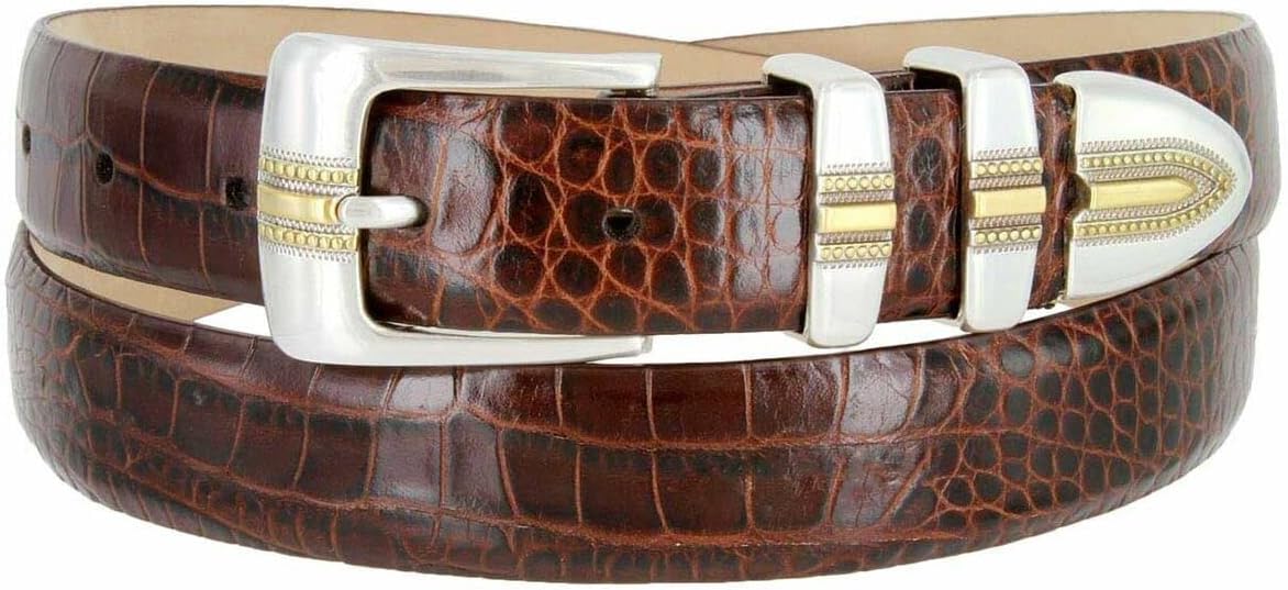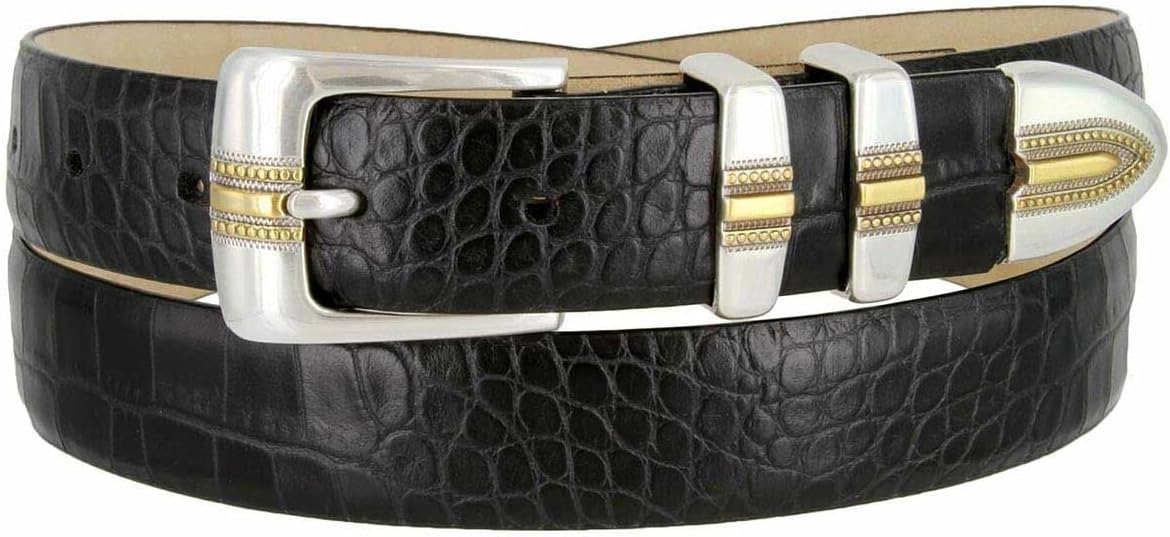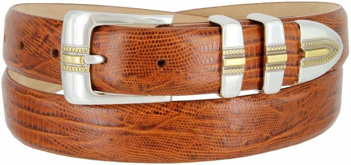 Made from High-quality Genuine Full-Grain Cowhide Leather, Hand-polished silver and silver gold plated four-piece buckle set belt. 1-1/8"(30mm) wide belt with 7 belt holes for adjustments to offer maximum comfort. A great designer dress belt perfect for work, business, sport, and outdoor. Detailed of Alligator, Lizard embossing, or smooth leather belt. ★★★ How to measure your Belt size ★★★: The best way is to measure around where you wear the belt and add 2 inches to the measurement. Our belts are measured from the fold where the buckle is attached to the middle hole. If you want to get the best size we recommend measuring a belt that works for you from the fold to the hole where you wear the belt.