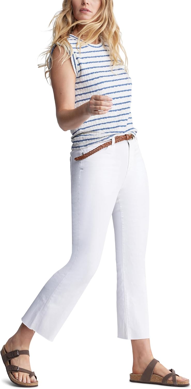 This Kim Kick Crop features a flared leg and are cropped at the ankle, to help you show off your best kicks. They are made of pure cotton denim and feature five-pocket styling, a zip fly. They're sure to be a solid and unassuming foundation piece in your wardrobe this summer.