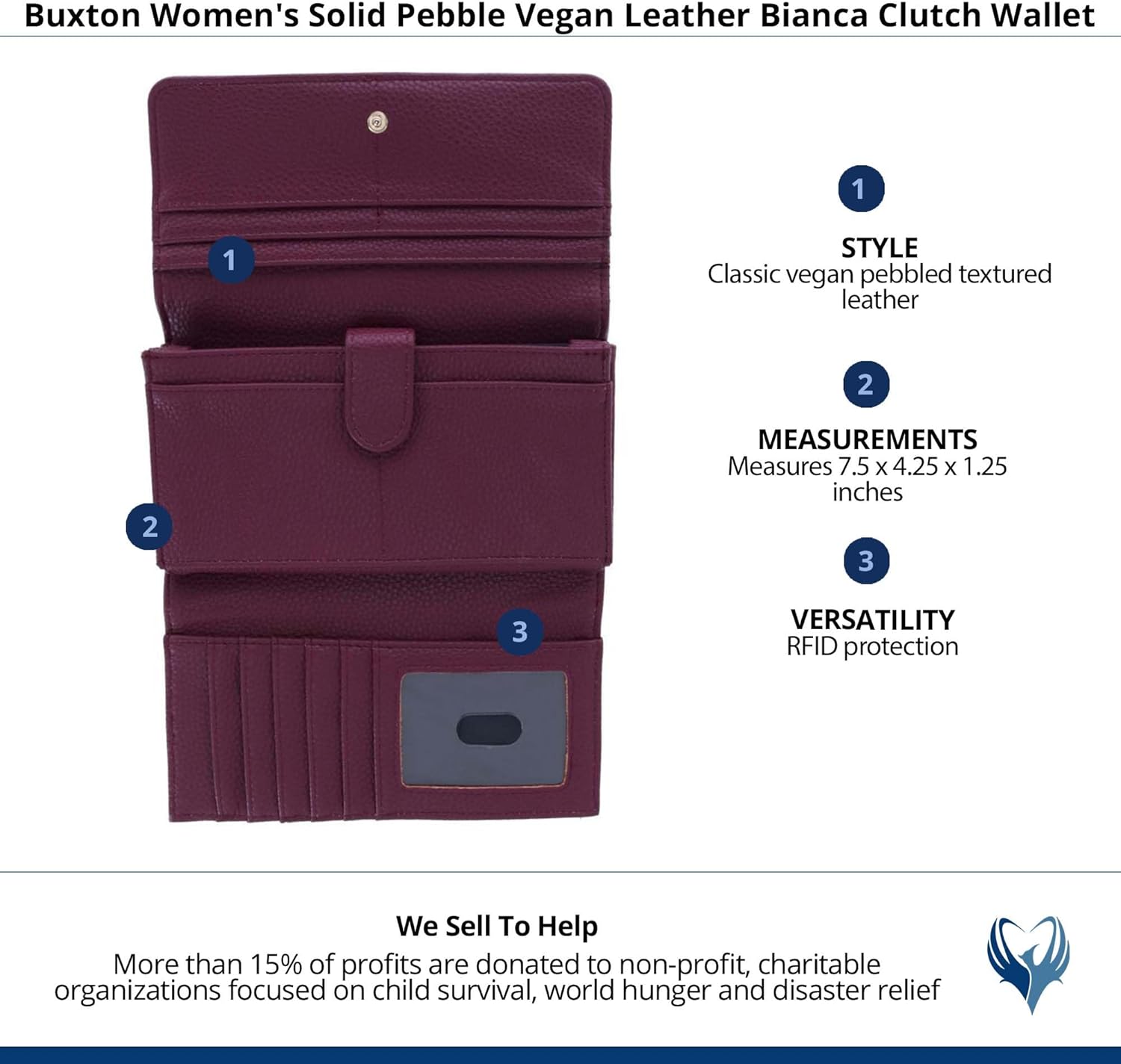 | Style Name | Women's Solid Colored Vegan Leather Bianca Clutch Wallet |