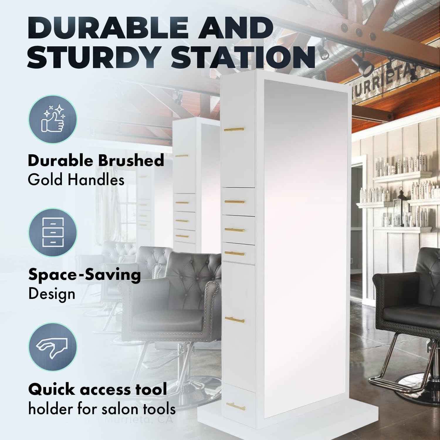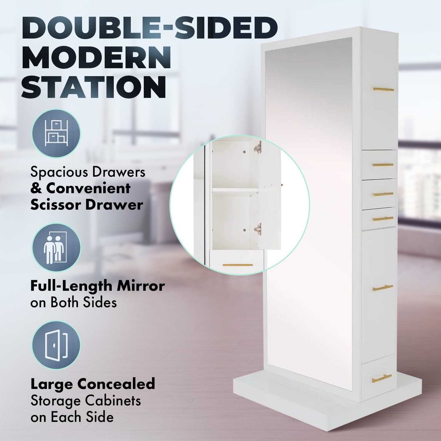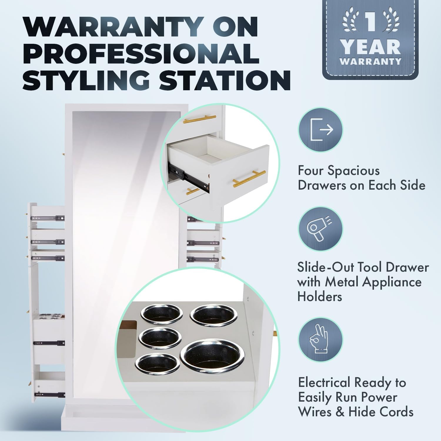 | Included Components | 2 full-length mirrors, 4 storage drawers, 1 slide-out appliance drawer with metal tool holders on each side, cabinet an adjustable shelf |