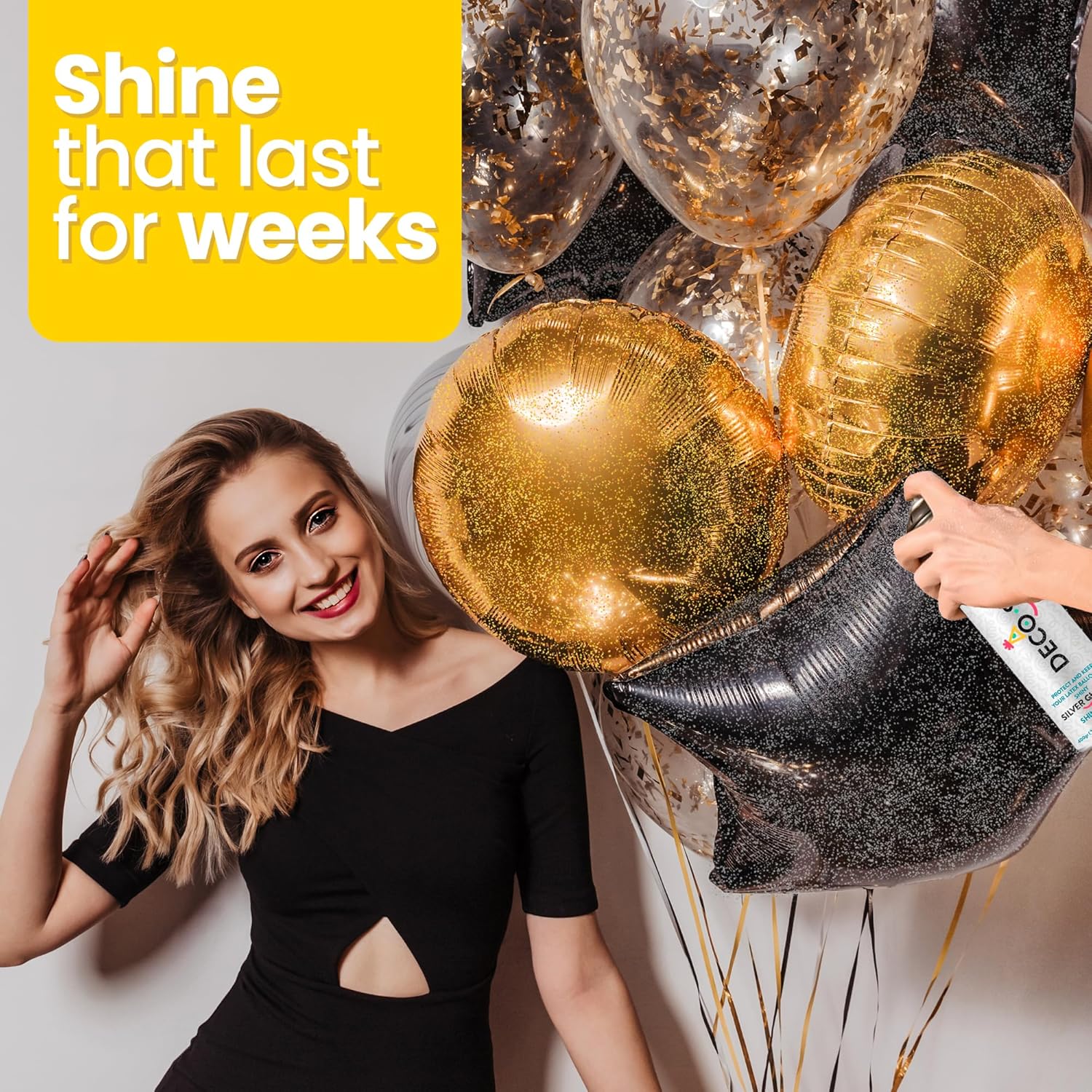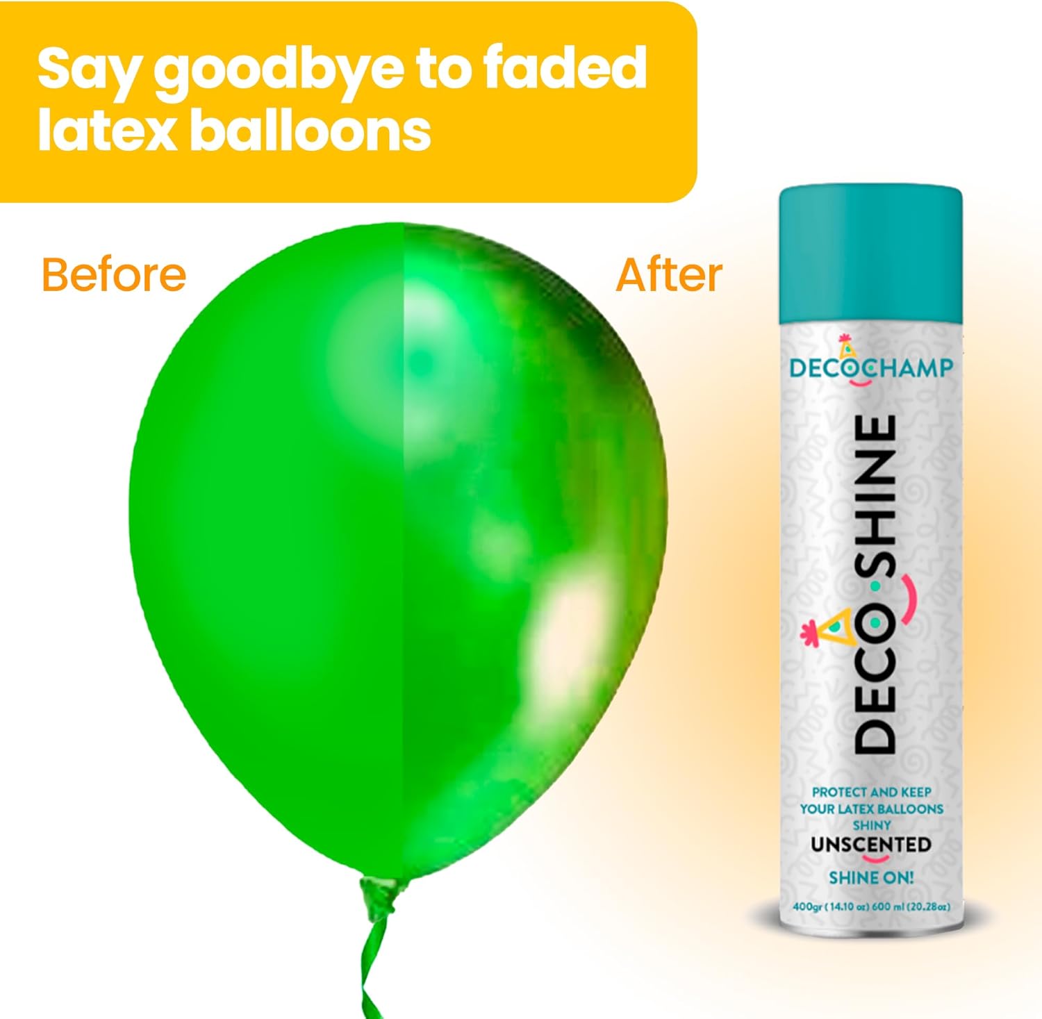 DecoShine is the premier balloon shiner that all professional balloon decorators have been waiting for! Our formula is proven to maximize shine on latex balloons. No need to worry about oxidized balloons and dull decorations. DecoShine is here to GLOW and SPARKLE your next balloon decorations with a flawless finish for days!