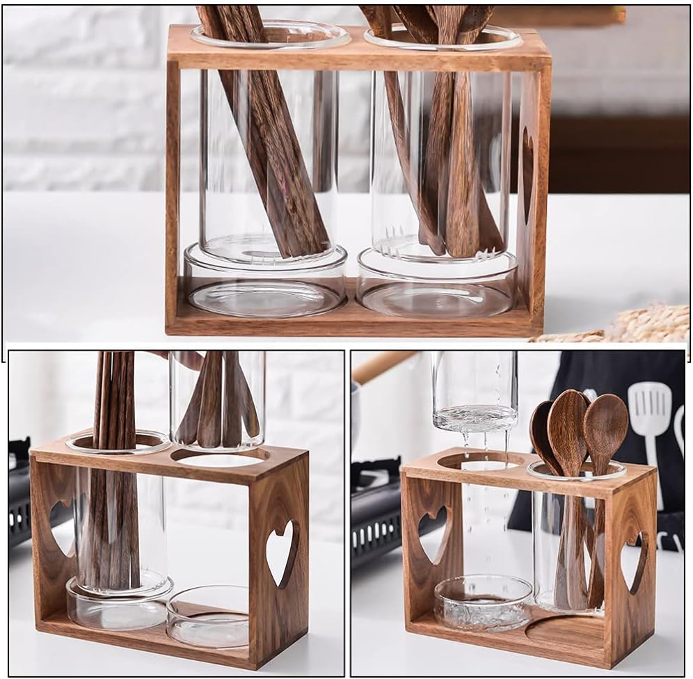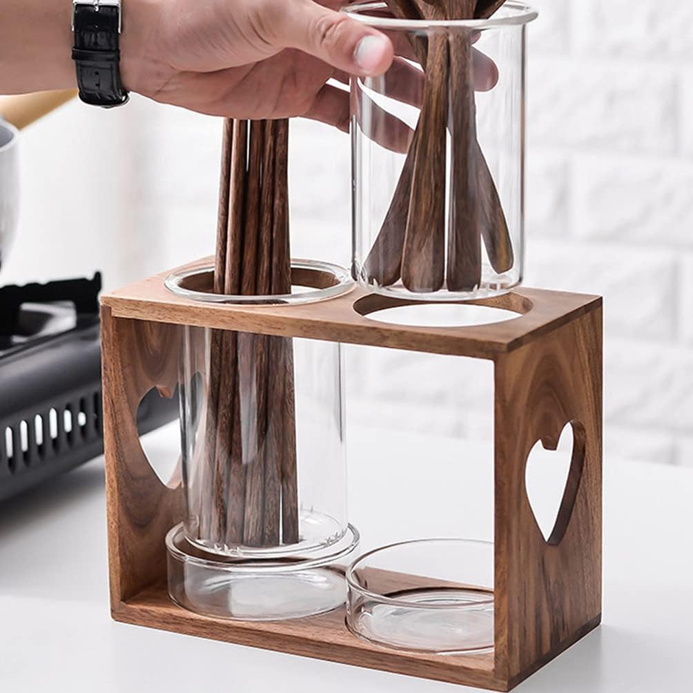 Description Made of safe glass and wood materials, and . With drainage holes, this chopstick storage holder kit is healthy and . Fine craftsmanship, thick and , not easy to deform or crack. It can keep your cutlery tidy and organized, simple and practical. It can stand on the table or kitchen cabinet, easy to take and hold. Features- Material: High Borosilicate Glass Wood- Size Wood Rack: 20. 00X15. 50X9. 50cm 7. 86X6. 09X3. 73in- Size Dish: 2. 8X8. 8cm 1. 10X3. 46in- Size Glass Tank: 12X8. 5cm 4. 72X3. 35in Package Including 1 x Wood Rack 2 x Glass Tanks 2 x Water Collecting Dishes