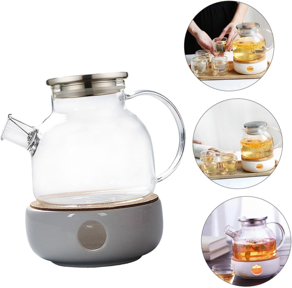 Package Include 1 x Teapot 1 x Teapot Warmer Characteristics -Material: Glass Tea Pot. -Size (teapot warmer): About 14.8X14.8X5cm/ 5.8x5.8x2in Teapot Heater. -Size (teapot): About 13.50X13.50X6.80cm/ 5.31X5.31X2.67in Teapot Warmer Heater. -Color: Assorted color. - The ceramic teapot warmer is very convenient and you can heat the tea with candle. Kettle - This teapot can stand the temperature difference of -30~15℃ Teapot. - The teapot can be used in refrigerator, microwave oven and dishwasher . Glass Teapot - The teapot and teapot warmer set can be present for others, especially for someone who like to drink tea Tea Tool. - Made of glass material, for use. T Teapot WarmerGoods DescriptionKettle Made of glass material, for use.Glass Teapot This teapot can stand the temperature difference of -30~15℃.Teapot This item includes teapot and teapot warmer.Teapot Warmer Heater The ceramic teapot warmer is very convenient and you can heat the tea with candle.Teapot Heater The teapot can be used in refrigerator, microwave oven and dishwasher