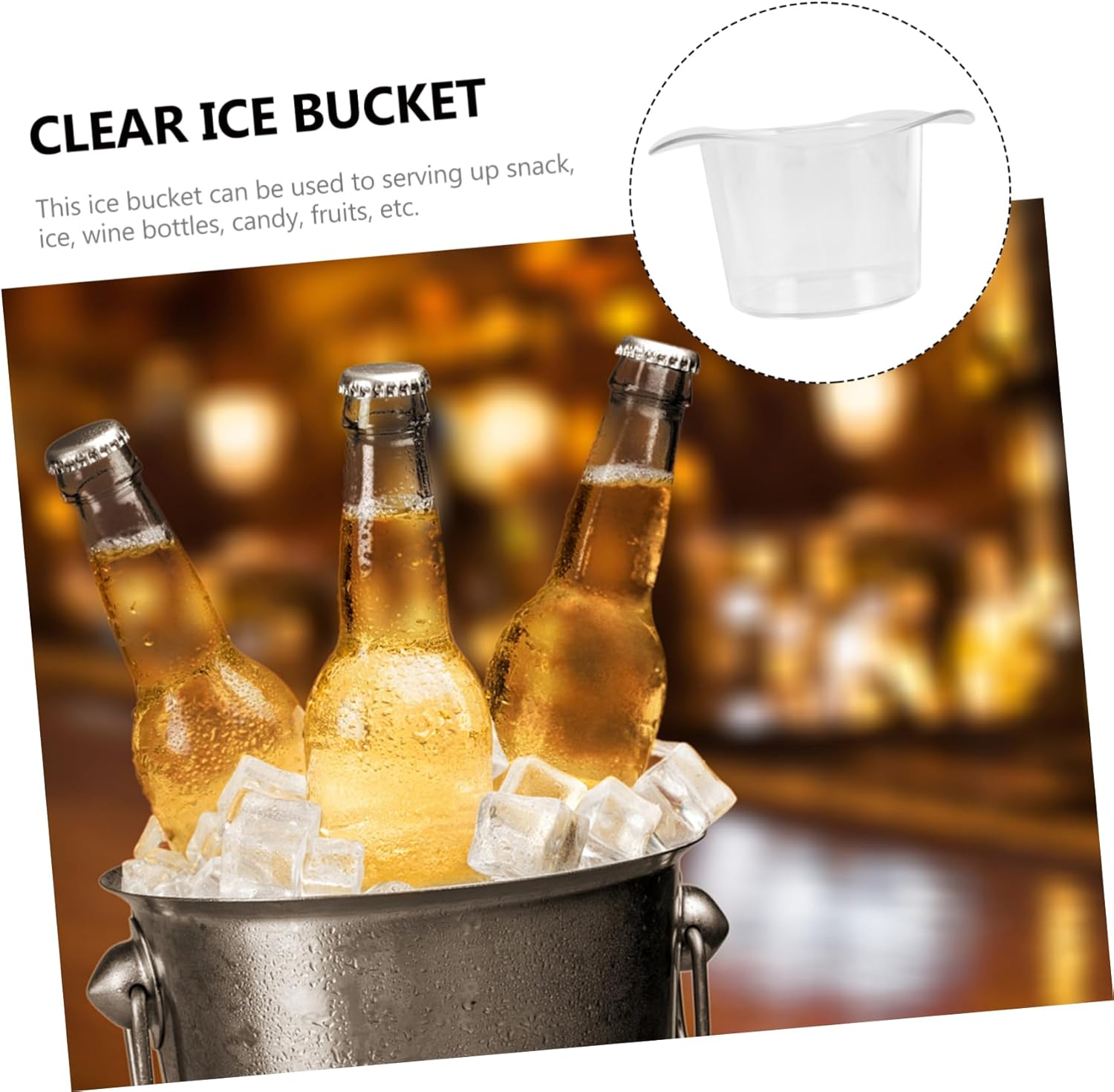Package Include 3 x ice bucket Features - Capacity: 1200ml ice bucket for bar - Color: Transparent bar bucket - Material: Acrylic ice bucket - Size: 20.00X20.00X11.00cm/7.86X7.86X4.32in ice buckets for parties - This bucket is made of high-end acrylic material, which is and easy to clean acrylic ice bucket. - for family, restaurants, hotel, bar, KTV, cafe shop, banquet, buffet and more bucket. - Fill this bucket with ice cubes or water, then it can be used to store beer, , wine and other beverage ice cube bucket. - Its chic and fashionable appearance can match well with various decorative styles clear ice bucket. - The transparent structure makes it easy to see the beverages in it clearly ice bucket for cocktail bar.Goods Descriptionclear ice bucket It looks simple and sophisticated.ice buckets for parties This portable ice bucket is made from acrylic material.ice cube bucket The classic design accommodates ice and other objects well and won't tip over easily.ice bucket for bar Its smooth texture and solid structure make it for use in bars or nightclubs