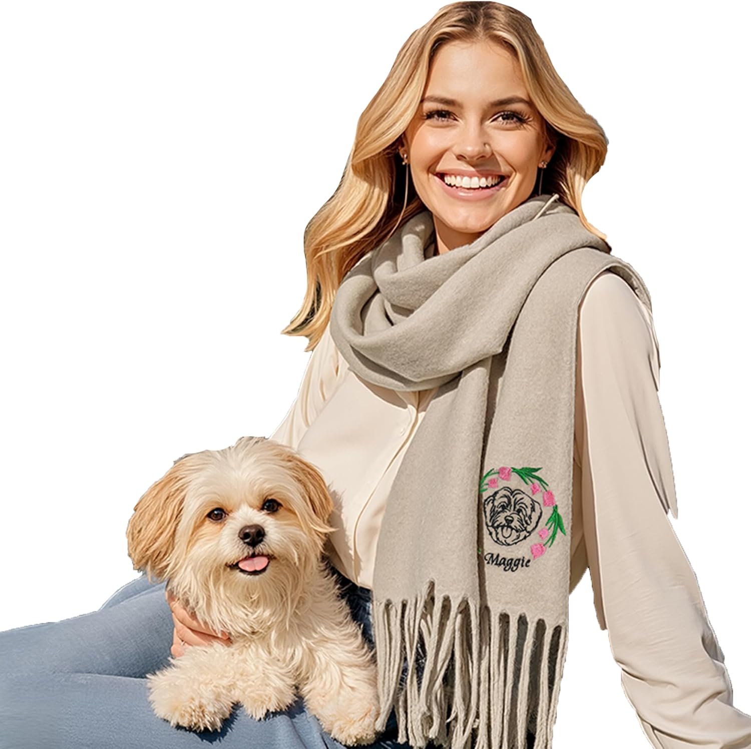 About CallieWe’re here to celebrate all the treasured moments of your life with your loved ones.The warm smiles and hearts filled with affection are what we strive to maintain for many years to come.Our state-of-the-art customizable gifts cater to every gender, interest, preference, life event.Every Callie gift is handcrafted with care and attention to detail by our artisans.We craft perfect aesthetics for your perfect relationships to build your infinite bond.Make your special ones feel loved and appreciated with Callie. Material: Polyester Fiber, Faux CashmereSize: Small: 79" x 16.5"(200cm x 42cm) Large: 79" x 27"(200cm x 68cm)Customized Area: Front EmbroideryCare: Hand wash to maintain the best appearance. Don’t bleach. Recommended to wash in cold water.Due to the different batches of products, the border of the scarf is cut differently, please refer to the actual product. Due to manual measurement and fabric elasticity, there may be 2-5cm (0.8-2 inches) difference in size