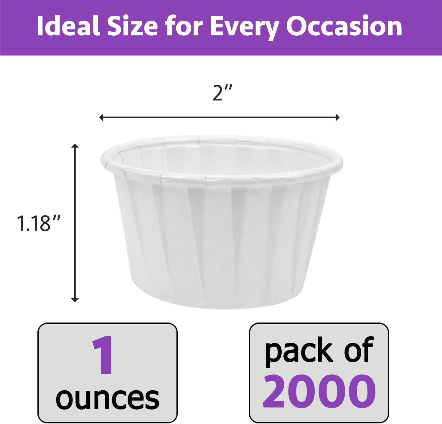 CAMKYDE 2000 Pcs Ketchup Cups Small Paper Cups 1 oz, Leak-Proof Food Safe Disposable Condiment Cups Paper Souffle Cups Sample Cups for Tasting, Food, Medication or Medicine Cups (Pack of 2000)