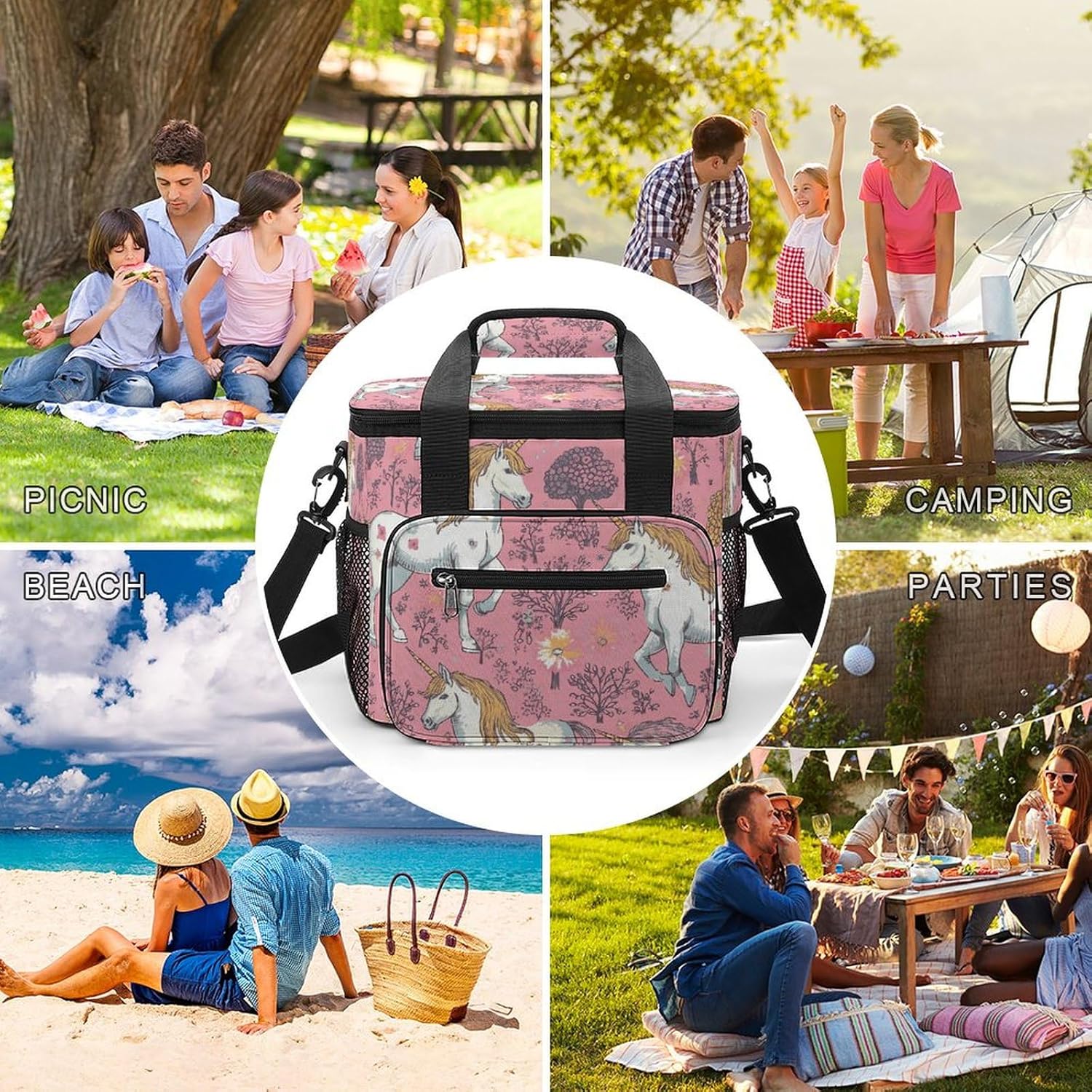 Versatile design: The Unicorns print travel cooler bag stylish, gender-neutral design is suitable for all ages and occasions, whether for work, gym, outdoor events, or travel.Perfect for every occasion: This insulated food bag is not just for camping, rugged cooler bag is an excellent choice for everyday use, such as meal prep, lunch at work, grocery shopping, and more.Space-Saving design: The stand-up structure of the outdoor lifestyle bag saves space and makes it easy to store when not in use, insulated grocery bag perfect for compact packing.Machine washable: The reusable lunch bag is easy to maintain, food organizer bag is washable, but avoid prolonged soaking or bleaching to preserve its quality.