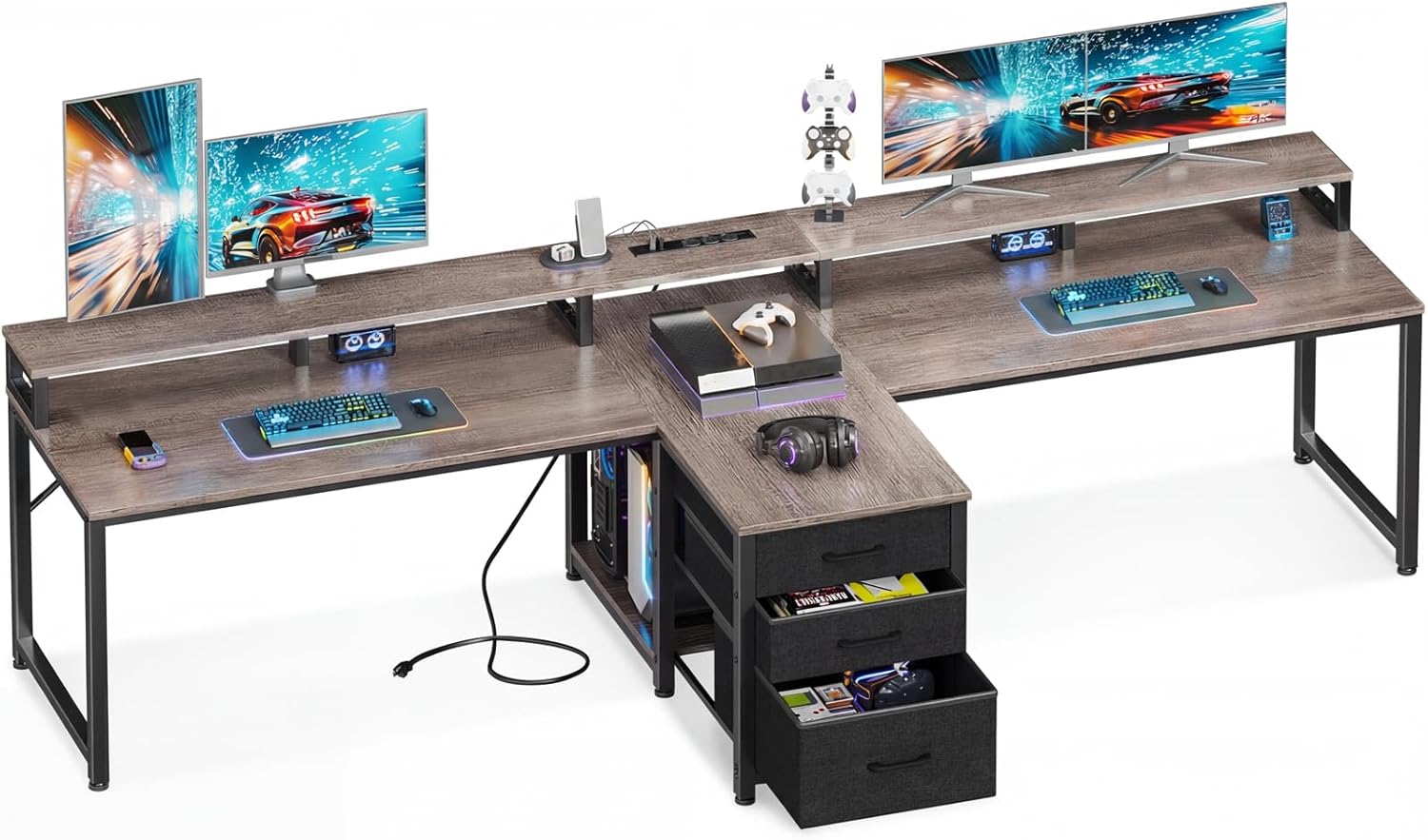 | Model Name | Casaottima 94 Inch 2 Person Home Office Computer Desk with Power Outlet & LED Light, Fabric Drawers & File Cabinet, Long Writing Desk |
