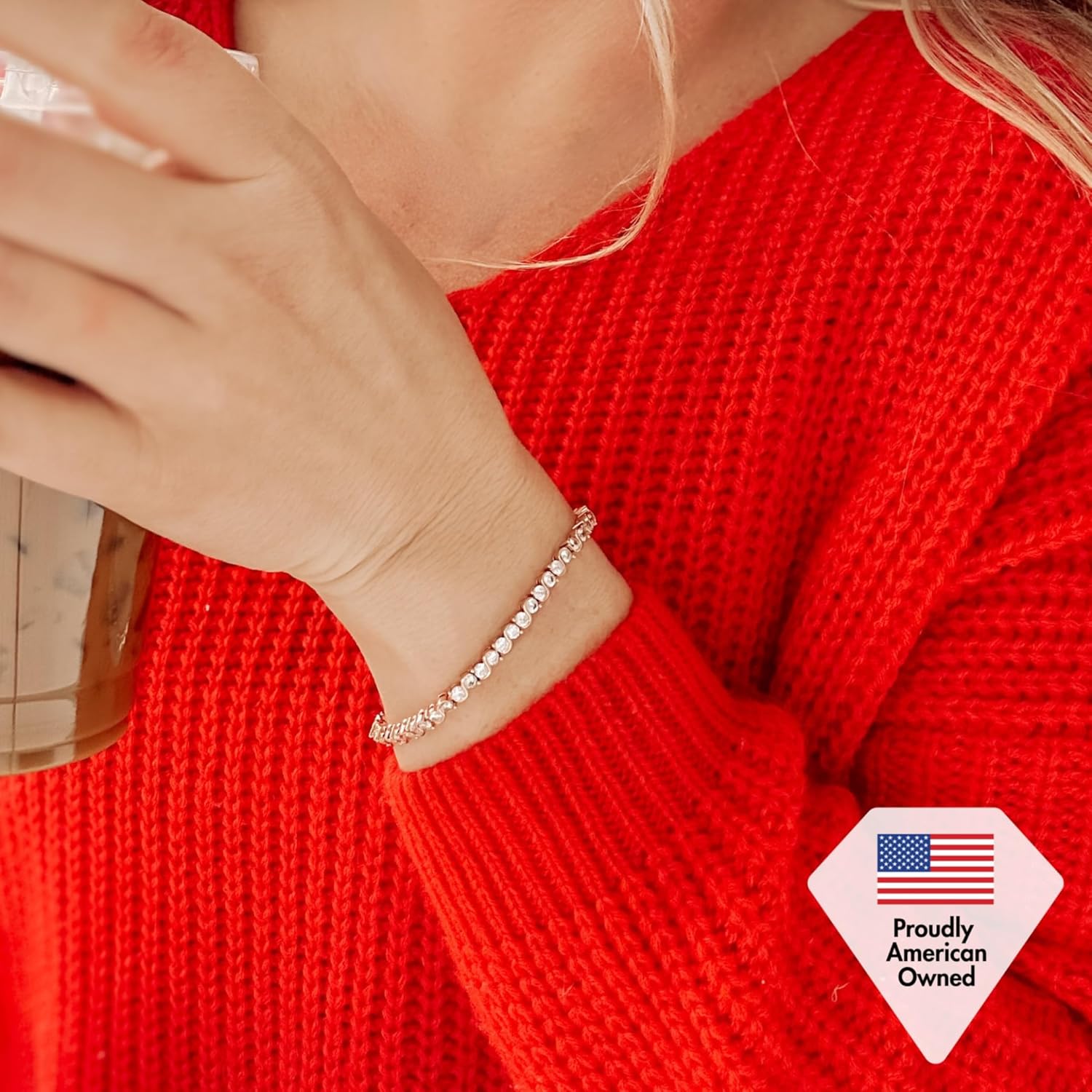 Add a whisper of elegance to your wrist with the Ezra 18k White Gold-Plated Infinity Tennis Bracelet, a radiant piece designed to capture attention and admiration. Featuring 54 shimmering simulated diamond crystals and an intricately designed infinity chain, this bracelet isn't just an accessory; it’s a symbol of connection, love, and timeless beauty. The 18k white gold plating brings out a polished, luminous finish that flatters every skin tone and elevates every outfit, whether you're headed to a boardroom or a romantic dinner. Its 7.5-inch length and secure tongue clasp offer a snug yet comfortable fit that stays in place all day. Lead-free, nickel-free, and hypoallergenic, it provides peace of mind for sensitive skin while ensuring everyday luxury. Whether it’s a gift for her birthday, Christmas, Halloween, an anniversary keepsake, or a just-because surprise, it arrives in a premium gift box, ready to delight. Is this bracelet suitable for everyday wear? Yes, its sleek, lightweight design makes it a daily use while maintaining that touch of elegance. How does it compare to similar products? Unlike generic tennis bracelets, Ezra blends emotional value with a modern twist on a classic, making it more than just jewelry; it’s a keepsake. Will it tarnish or irritate skin? Not. Cate & Chloe use premium plating and materials to ensure long-lasting wear without discomfort or discoloration. Can it be worn to formal events? Its graceful style and subtle sparkle make it versatile enough for everything from weddings to gala nights. At Cate & Chloe, we believe every woman deserves to feel confident and radiant, without compromising on quality. That’s why the Ezra Infinity Bracelet is crafted to deliver beauty, meaning, and brilliance in one unforgettable piece.