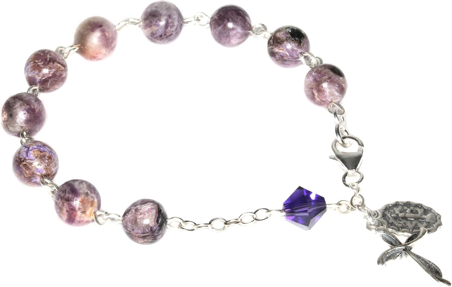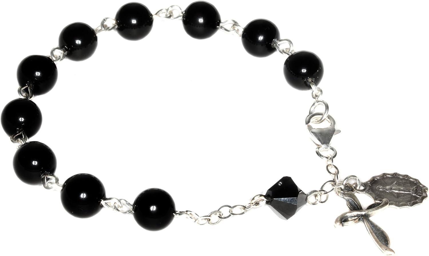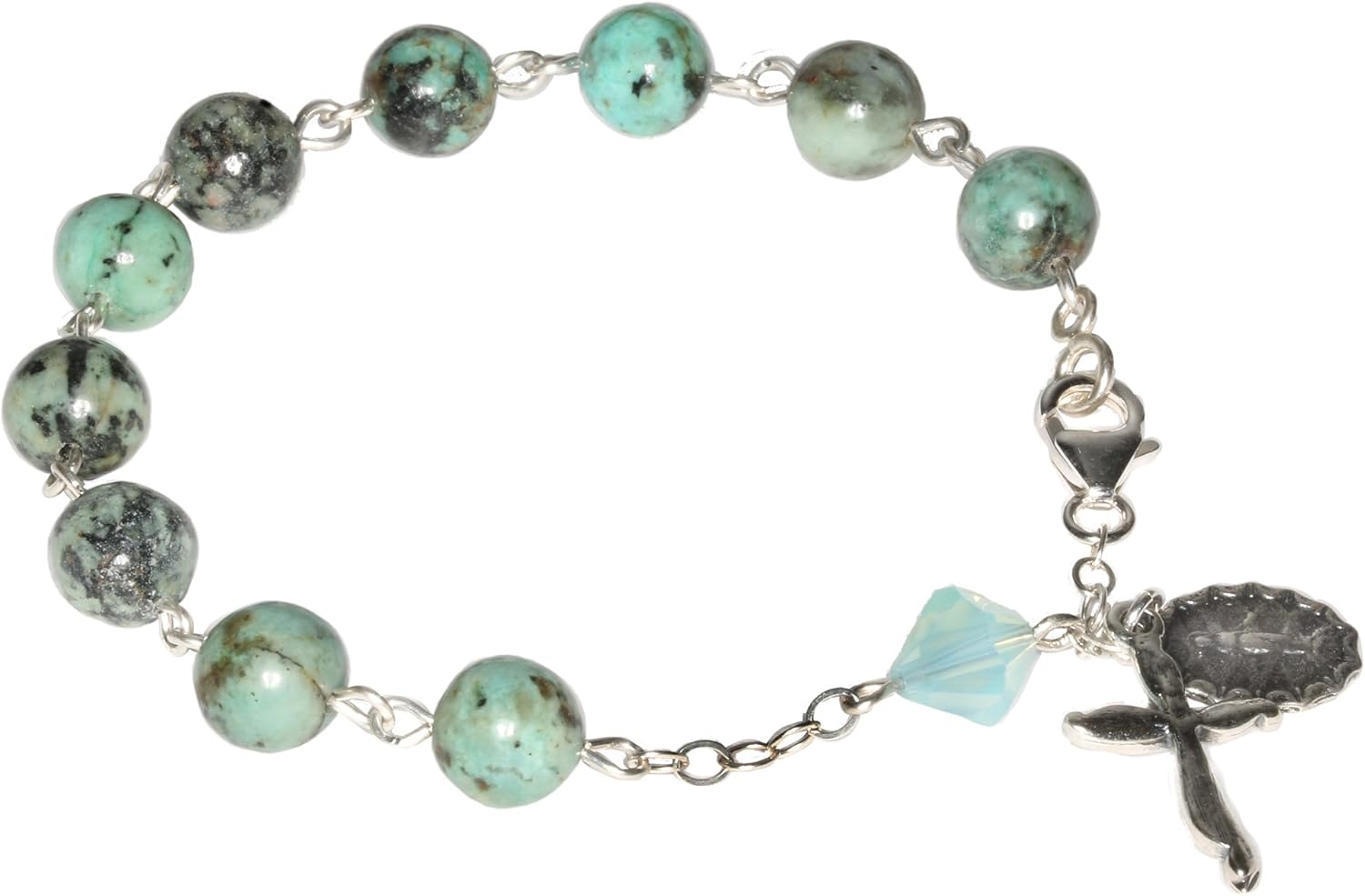 Our exquisite Catholic Prayer Rosary Bracelets are a harmonious blend of timeless elegance and spiritual devotion. Crafted with precision and care in the USA, this rosary is designed to enhance your prayer experience while captivating the eyes with its radiant beauty. The smooth, cool touch of the beads add a tactile dimension to your prayers, creating a serene and contemplative atmosphere. If you are choosing an Austrian Crystal Rosary Bracelet, it will glisten with a brilliant sparkle, reflecting the divine light as you engage in your spiritual journey. These crystals are known for their exceptional clarity and color, adding a touch of sophistication to this sacred accessory. Whether you're a devoted Catholic or seeking a meaningful gift for a loved one, our Gemstone and Austrian Crystal Catholic Prayer Rosary Bracelet is a testament to both faith and style that you can wear. Embrace the meditative rhythm of each prayer bead and let the beauty of this rosary enhance your spiritual connection. Elevate your prayer experience with a rosary that transcends the ordinary – a symbol of devotion and a cherished heirloom for generations to come.