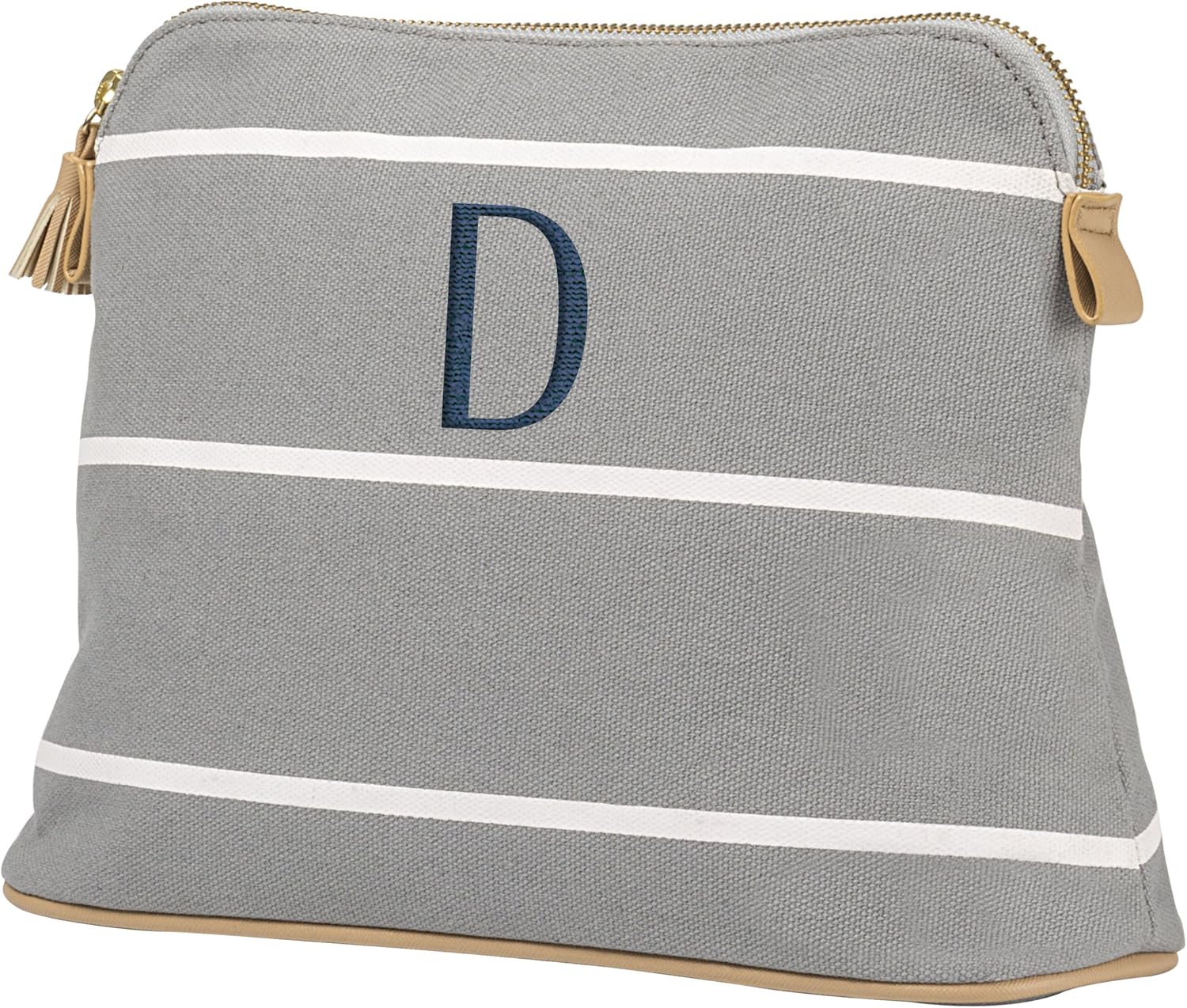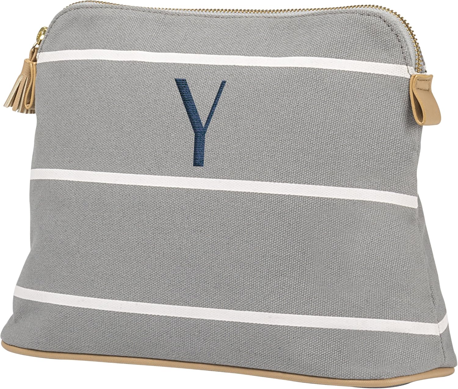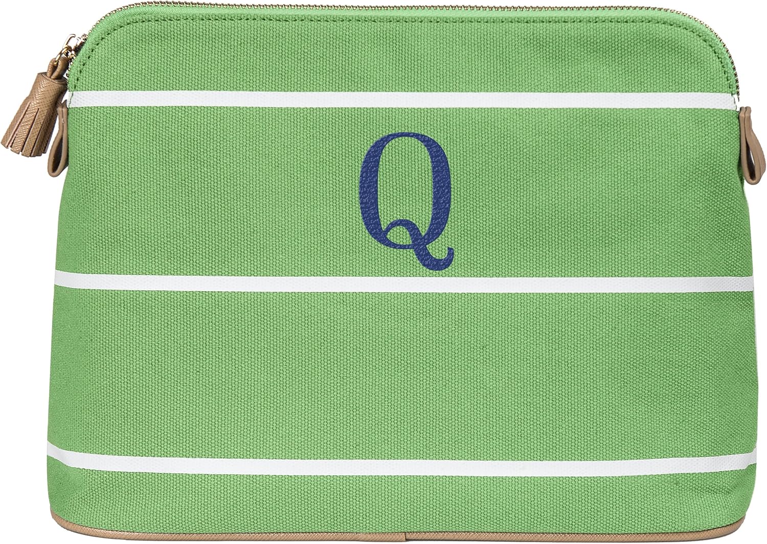 Our personalized striped cosmetic bag is a stylish case that can be used for anything from toiletry and makeup storage to safe and easy travel. Fashioned with a sturdy canvas construction, this cosmetic bag features a wide, fully-lined zipper top, a zippered inside pocket for separate storage, and a spacious interior for all your Preening needs. Great as a gift for any of your girlfriends or as a special treat for yourself.