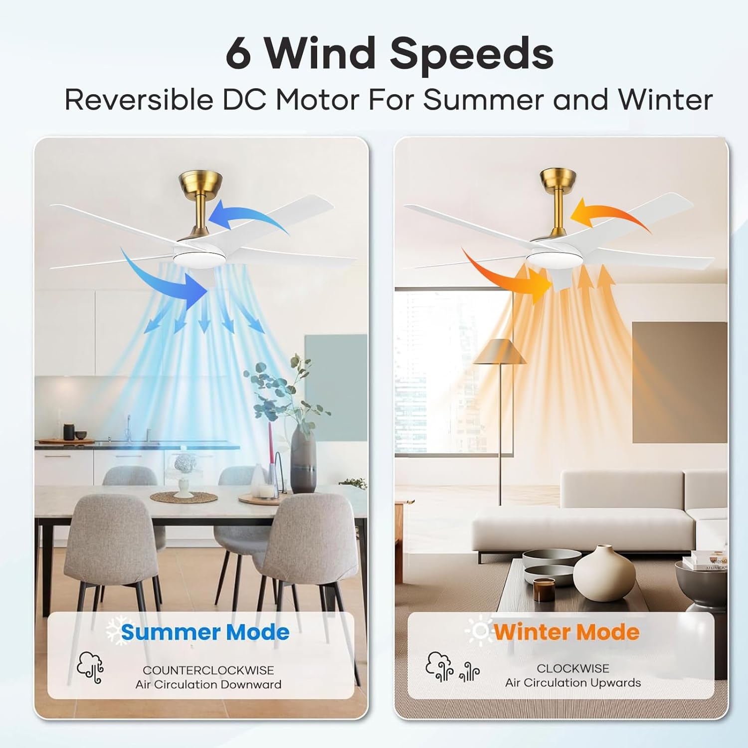 Luxury Modern Aesthetic for Designer Spaces:Boasts a sleek white-and-gold finish that complements contemporary, minimalist, and luxury interior styles. The 52-inch blade span delivers balanced airflow while serving as a stylish focal point, ideal for bedrooms, living rooms, home offices, and covered outdoor patios.
