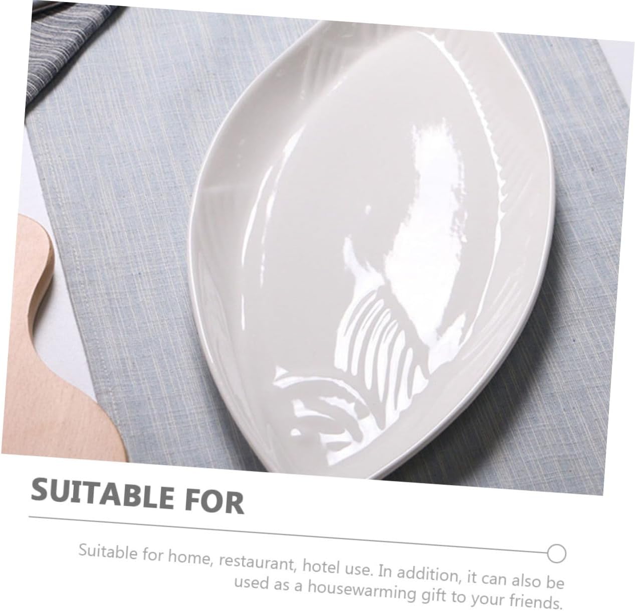 Package List 1 Characteristics -Material: Ceramic ceramic serving dishes Note: there may be some variation due to hand crafting restaurant plates - Size: 45.50X20.00X3.00cm/17.88X7.86X1.18in plate for fish -Product Info:Ceramic fish plate - Color: White serving dishes for entertaining -Perfect for any event, and can hold cupcakes, food, buffet food, small appetizer plates ceramic plate for hotel -Suitable for any occasion, family reunions, parties, birthday salad storage container porcelain tray. -Made of delicate material, very for long term using, good food plate. Smooth surface, it is easy to clean shaped plate. -Modern style design, easy to match with other tableware to enhance your table decoration food plate. -Creative design, smooth surface, Serving Platter will not hurt your hands when you use this plate food server.Goods Informationfood plate Small and delicate, creative and simple modeling can receive a variety of food snacks.ceramic serving platter Simple shape, fashionable and beautiful, .ceramic plate for hotel Use it to serve for dish, fruits, steak, breakfast, etc.ceramic dinner plate Use it to serve for dish, fruits, steak, breakfast, snacks, sandwiches and other desserts.steamed fish plate Special shape design, Serving Platter is definitely a