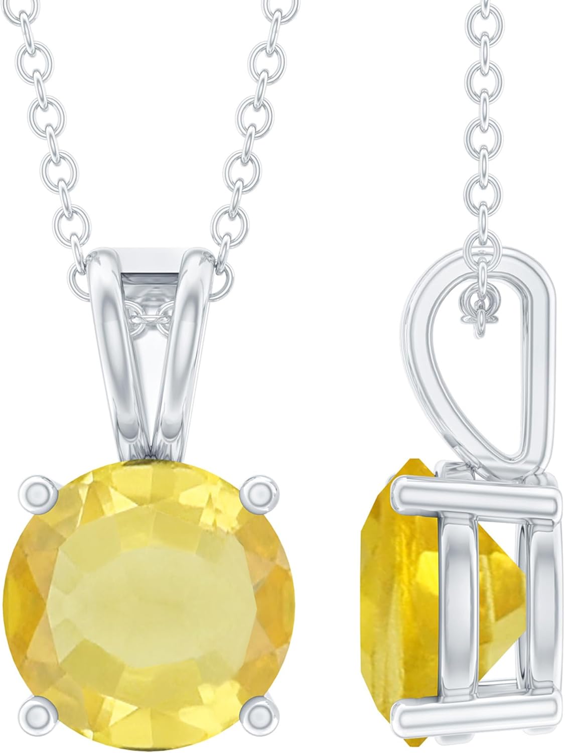 Surprise her by gifting this stunning Lab Grown Orange Sapphire Necklace. This charming Solitaire Pendant is sure to captivate her with its charm, featuring an 8 mm Round Shaped Lab Grown Orange Sapphire elegantly set in prong setting. It hangs gracefully from a delicate cable chain and is crafted in 14K White Gold Plated Silver, radiating sophistication and allure. This Lab Orange Sapphire Solitaire Necklace is presented in a luxurious box that can be used for storage when not worn. Crafted with elegance and meticulous attention to detail, this Solitaire Necklace is a stunning accessory that can be beautifully suited to any occasion. Ignite your style with the fiery brilliance of this Lab Orange Sapphire Pendant giving a vibrancy to shine without distraction. A sleek solitaire design ensures timeless sophistication, perfect for both everyday wear and special occasions. Whether worn as a statement of individuality or gifted as a token of affection, this necklace embodies vintage-inspired charm with modern allure. A single spark of brilliance, it transforms any look into a masterpiece.