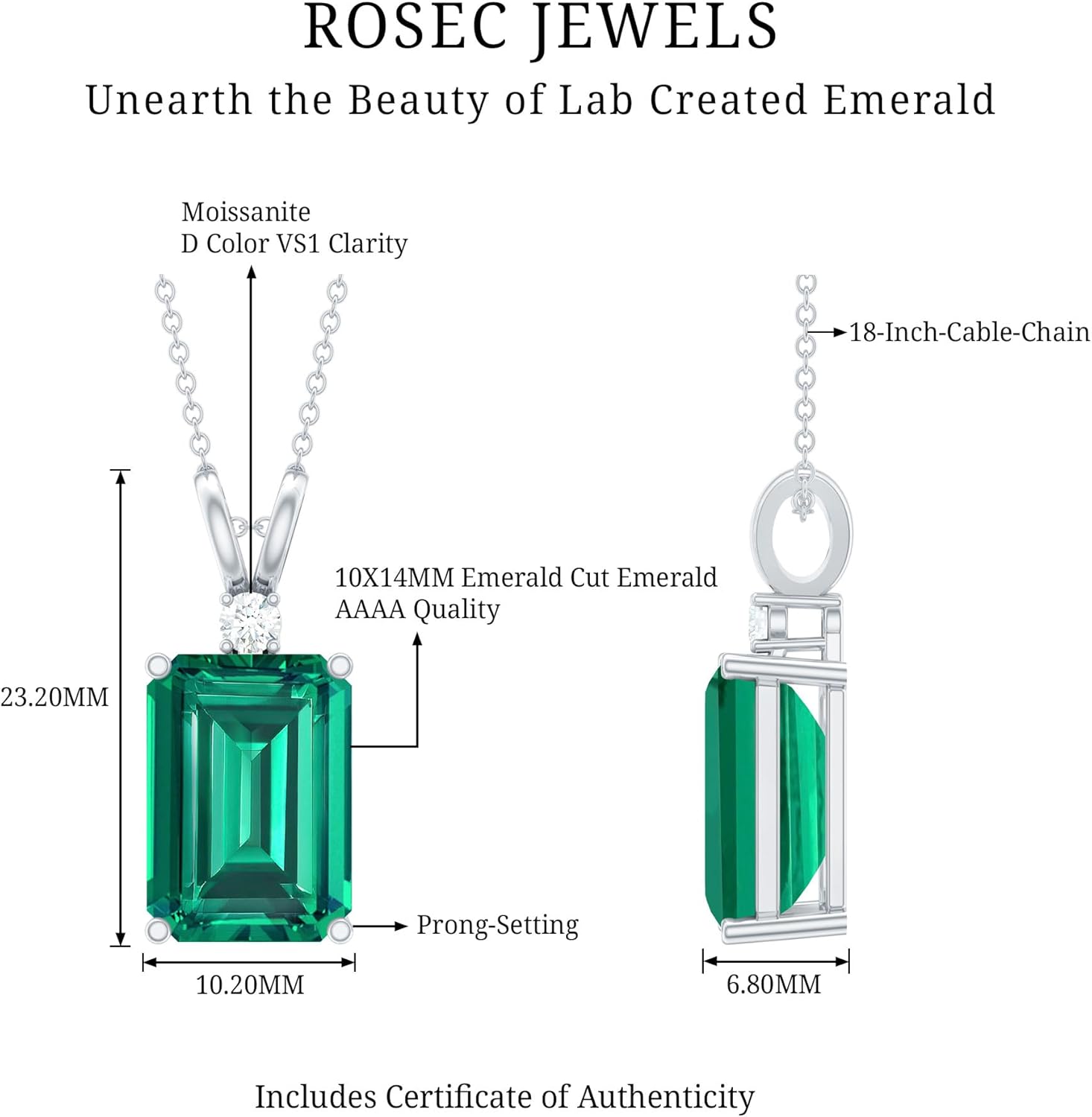 | Material | Lab Grown Emerald, Moissanite, Sterling Silver |