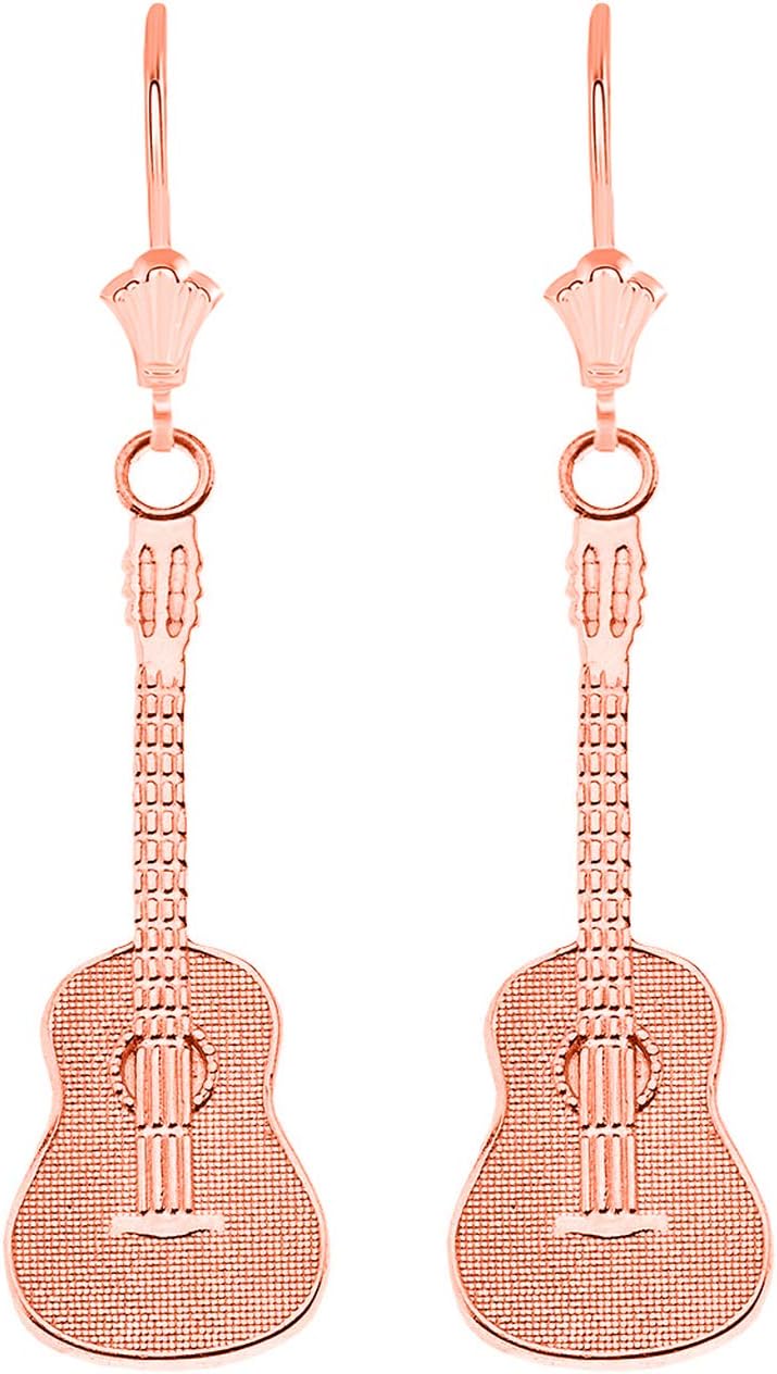 Rock this stylish gold acoustic guitar lever back earring set. Complete with strings and control knob details, this stunning polished gold dangle guitar earrings for women girls is the perfect accessory to finish your rock n'roll look. Made with solid 10k/14k gold, this is the perfect fashionable musical instrument charm for all music lovers. Earring Information: Earring Height (with Leverback): Approx. 1.25 in Earring Height (w/o Leverback): Approx. 1.00 in. Earring Width (Widest Point): Approx. 0.32 in. Earring Depth: Approx. 0.04 in