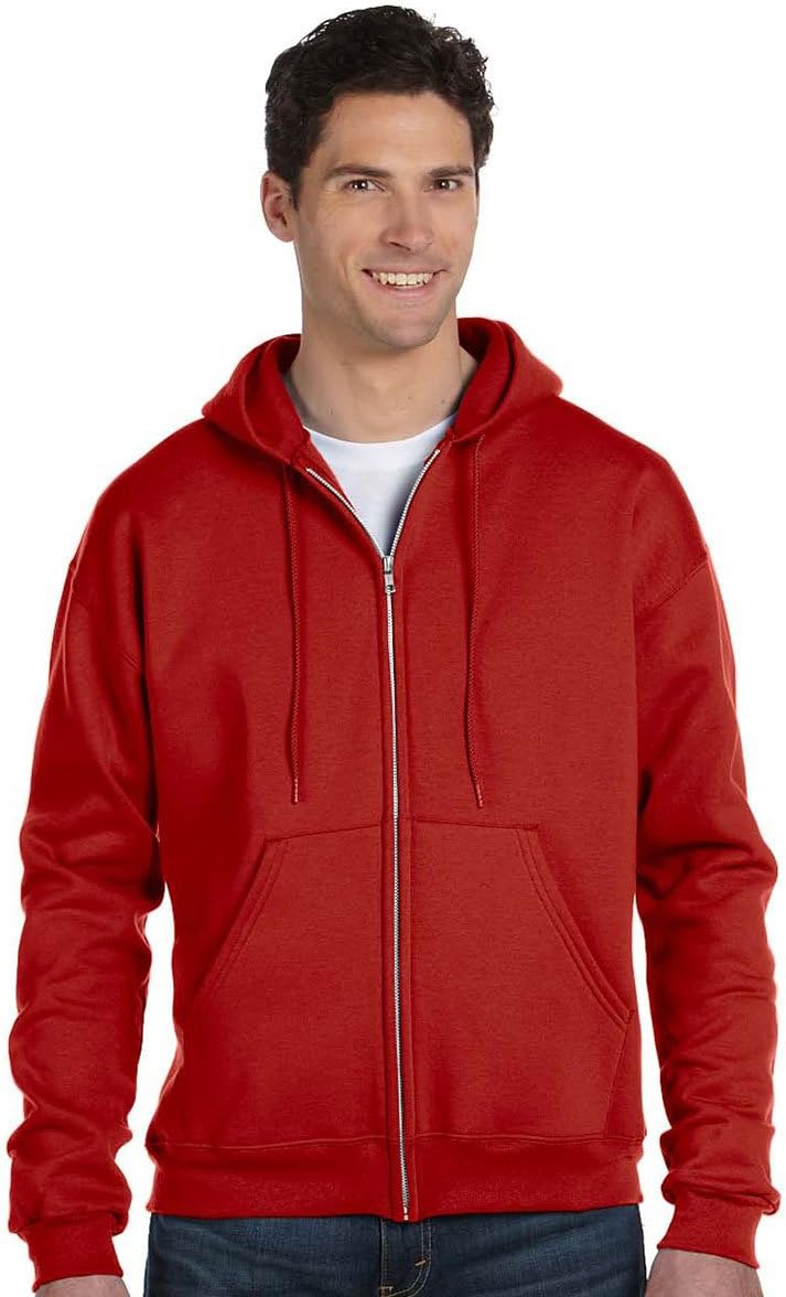 This Champion EcoSmart Full-Zip Hoodie, a blend of 50% cotton and 50% polyester (5% recycled), offers superior softness and durability. It features 1X1 rib cuffs and waist with spandex for shape retention, a two-ply hood with a basketweave tipped drawcord, a front pouch pocket, and a full zip front with an aluminum zipper. Available in Black, Dark Green, Light Steel, Navy, Silver Grey, and White, and sizes S to 3XL.