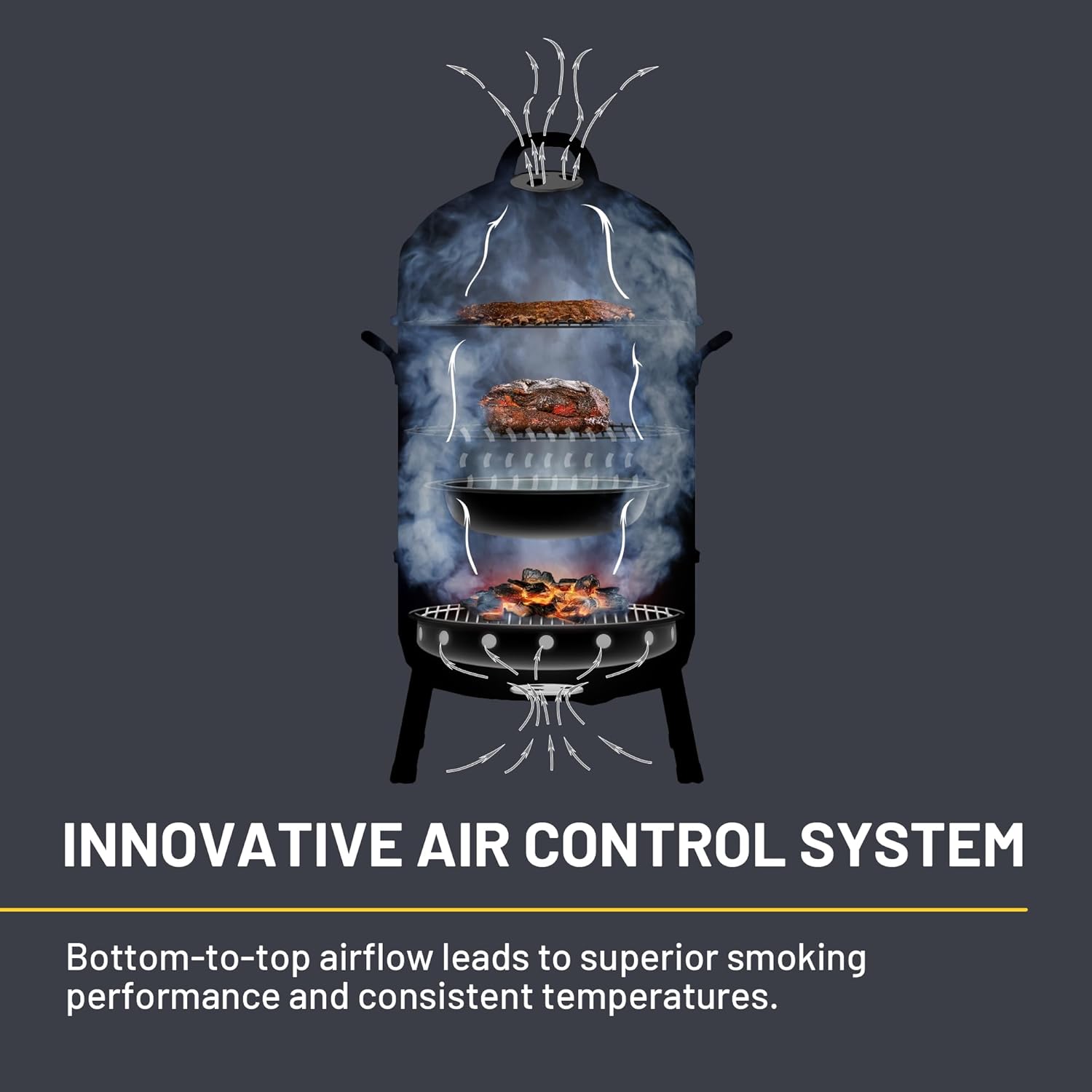 Have it all with the Char-Broil® 16-inch Bullet Smoker—a durable, high-quality product and superior smoking performance at an amazing value. This bullet smoker features an innovative airflow control system that simplifies setting and maintaining cook temperatures. The durable porcelain coated steel body and cooking components stand up to rust while still being easy to clean. The removable ash pan system neatly collects ash from hours of cooking, making clean-up simple. Packed with features, this smoker provides exceptional performance without breaking the bank.