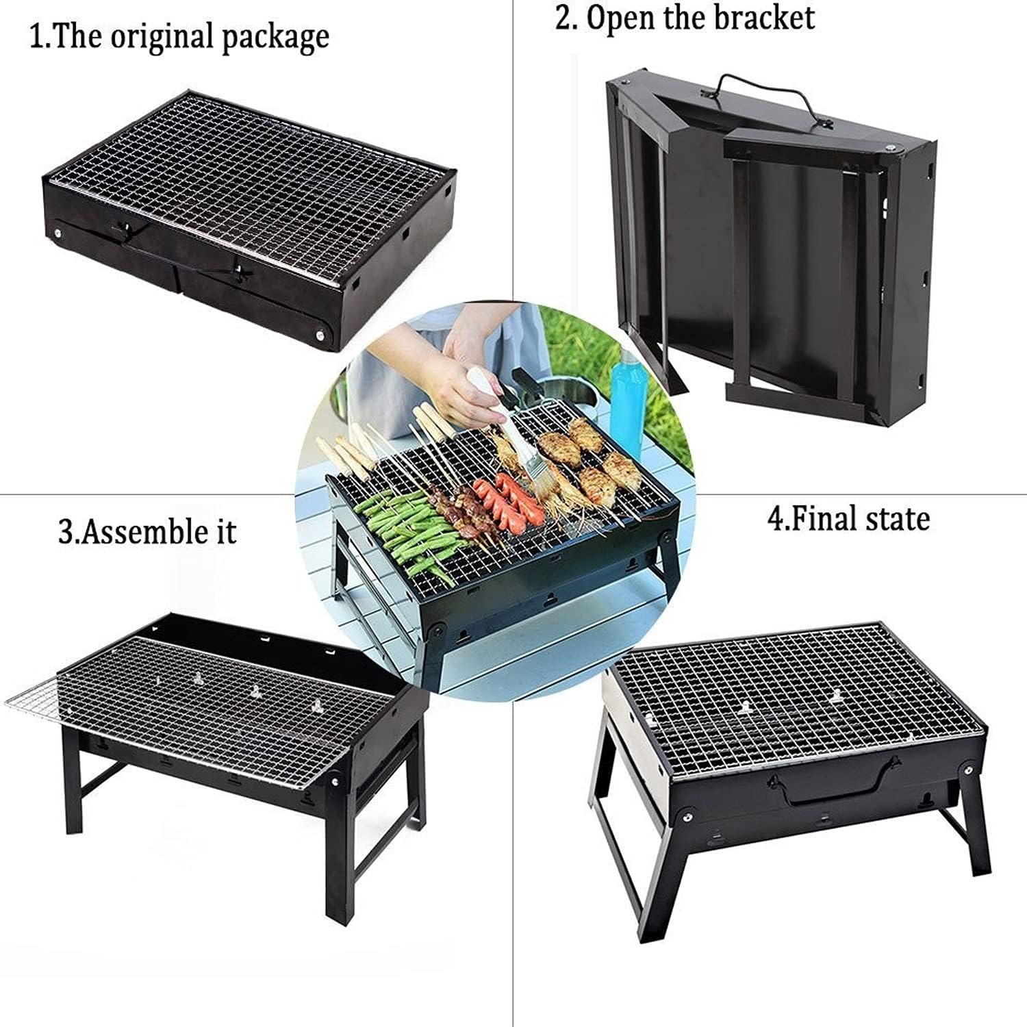 Enjoy A Leisurely Life With the charcoal bbq grill, you can have a delicious light barbecue with your families and friends in the yard on weekends or vacations. Also, it can be a camping grill, when you are ready for camping or picnics; You can easily take it outside for barbecue at any time. Image that basking in the sun and smelling the fragrant roast meat on the beach. What a pleasant life! Charcoal Grill, Folding Portable Lightweight Barbecue Grill Tools Easy to Carry The grill is made of lightweight and practical solid iron material. It is small and does not take up space. It can be used for 4-6 people. Foldable & Portable Barbecue Grill The folding grill allows you to enjoy the barbecue anytime, anywhere. When using the grill, you only need to unfold the legs of the grill, you can use it directly, very convenient. [Tip: please keep the charcoal grill in dry place when you don't use it] Removable design This BBQ grill is equipped with a separate carbon mesh, grill mesh, and carbon stove, which is convenient for cleaning the grill after use.