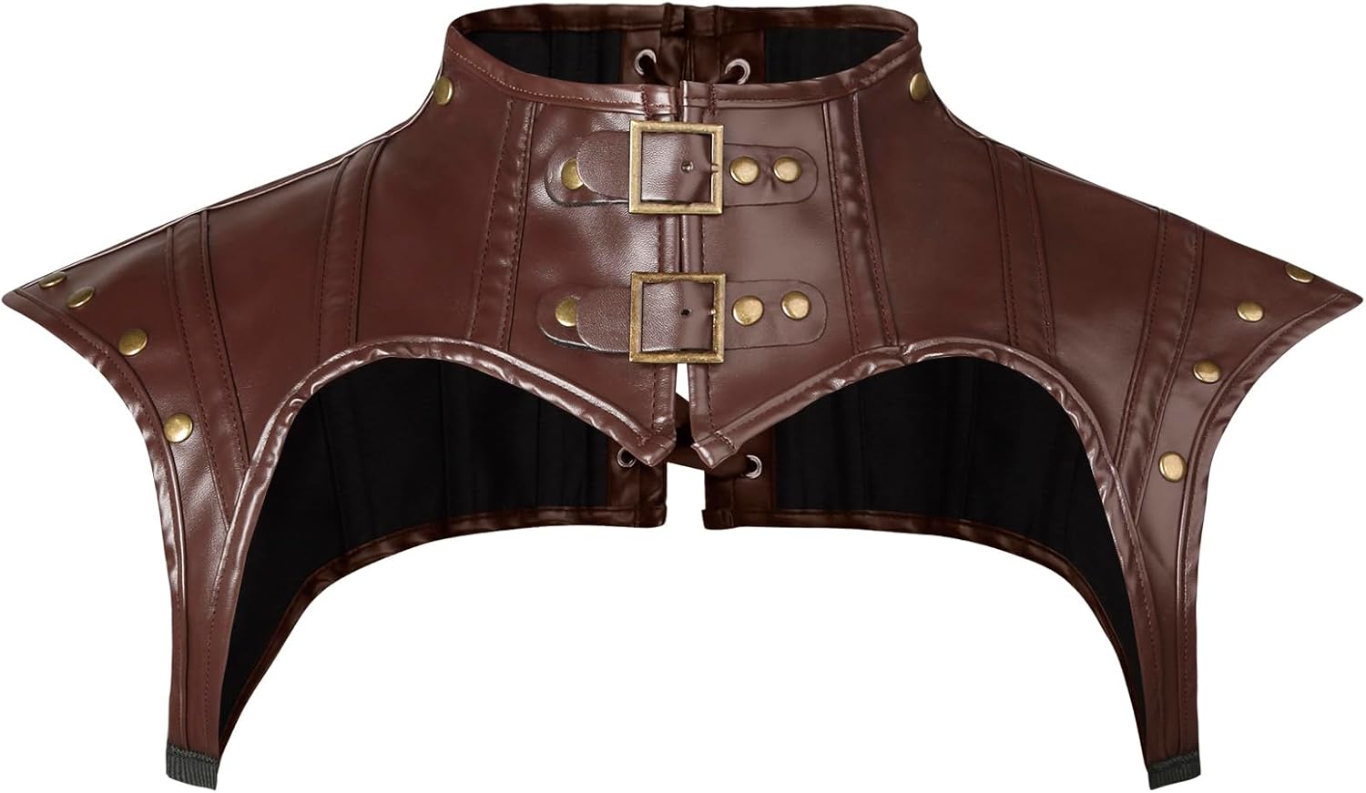 Steampunk gothic shrug features stand collar design, made of high-quality PU leather. The rivets evenly established on the shoulder and collar. Adjustable buckles at front, back lace up ribbon design which can make the shrug fit your body perfectly. 6 tiny plastic bones build the construction of shrug, not easily deformed. It not only shows the steampunk look but also reflect the novelty and stylish. It is perfect for steampunk-themed parties, pirate costumes, medieval costume, vampire costume, Halloween costumes, LARP, theatrical props, etc. besides, It also well matched with the corset, skirt, shirt, etc., which will be finishing touch of clothing collocation when you participate in any parties. About Size Chart Size Chart(CM) S/ Neck: 36, Neck to Shoulder: 17.5, Front/Back Length: 12/18.5, Cuff: 52 M/ Neck: 38, Neck to Shoulder: 17.5, Front/Back Length: 12.5/19, Cuff: 52 L/ Neck: 40, Neck to Shoulder: 17.5, Front/Back Length:, 13/19.5, Cuff: 54 XL/ Neck: 42, Neck to Shoulder: 17.5, Front/Back Length:, 13.5/20, Cuff: 54 2XL/ Neck: 44, Neck to Shoulder: 17.5, Front/Back Length:, 14/20.5, Cuff: 54 Size Chart(inch) S/ Neck: 14.1, Neck to Shoulder: 6.8, Front/Back Length: 4.7/7.2, Cuff: 20.4 M/ Neck: 14.9, Neck to Shoulder: 6.8, Front/Back Length: 4.9/7.4, Cuff: 20.4 L/ Neck: 15.7, Neck to Shoulder: 6.8, Front/Back Length: 5.1/7.6, Cuff: 21.2 XL/ Neck: 16.5, Neck to Shoulder: 6.8, Front/Back Length: 5.3/7.8, Cuff: 21.2 2XL/ Neck: 17.3, Neck to Shoulder: 6.8, Front/Back Length: 5.5/8.0, Cuff: 21.2 Due to Manual Measurement, Please Allows 1-3(cm) Deviation. The Real Color of the Item may be Slightly Different from the Pictures Shown on Website Caused by Many Factors such as Brightness of Your Monitor and Light Brightness.