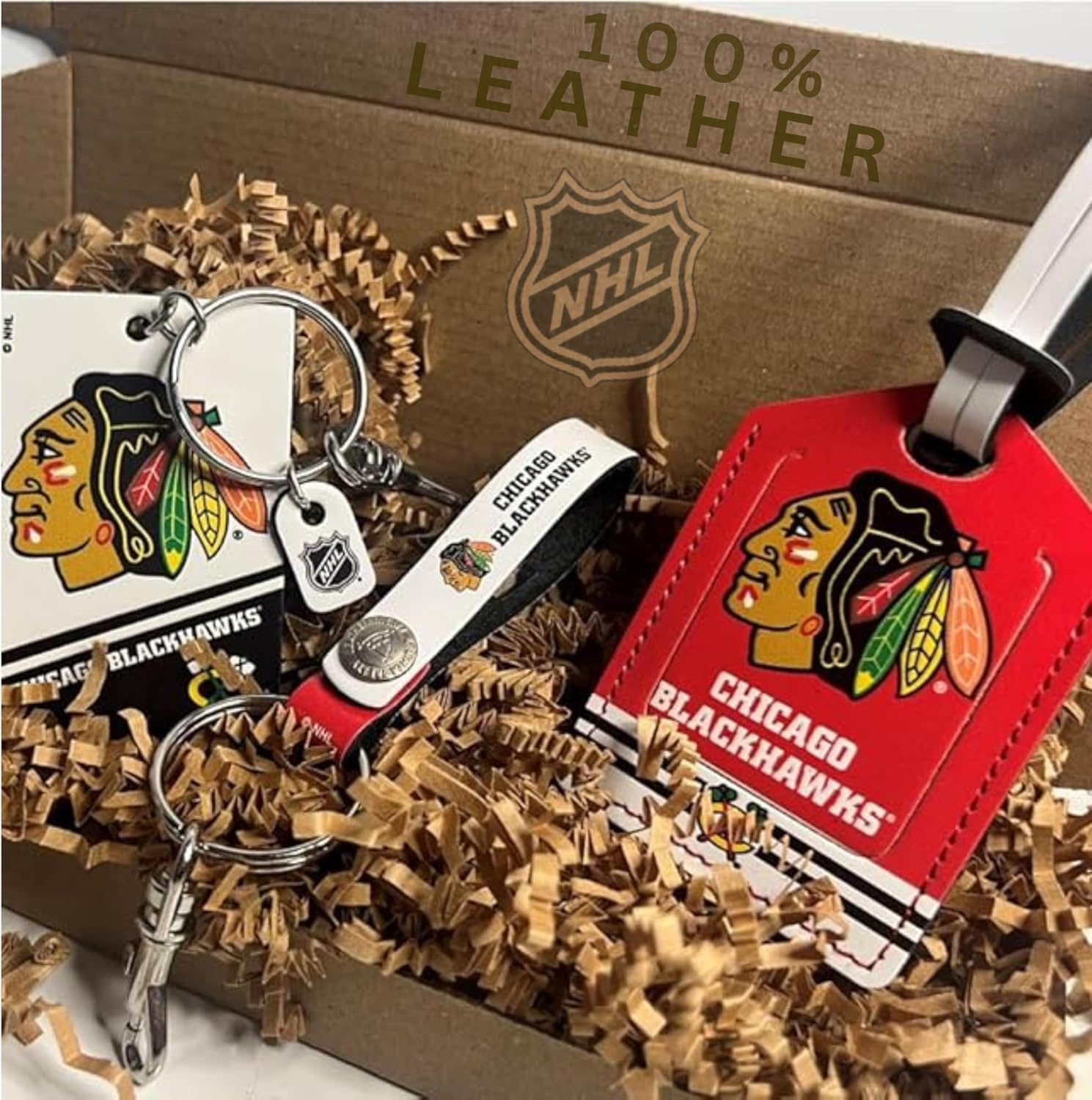 CHICAGO BLACKHAWKS Liscensed NHL Three Piece Leather Gift Pack with Personalized Tag Elevate your fan experience! The CHICAGO BLACKHAWKS Leather Three-Piece Gift Pack is an essential accessory set for every devoted fan. This NHL-licensed collection combines sophistication with team spirit, making it the perfect gift for yourself or a fellow Ducks enthusiast. Whether you're heading to a CHICAGO BLACKHAWKS game, traveling, or simply showcasing your team pride, this leather gift pack combines practicality with a touch of elegance. Don’t miss out...!!! Get your Gift Pack today and show off your love for the game in style!