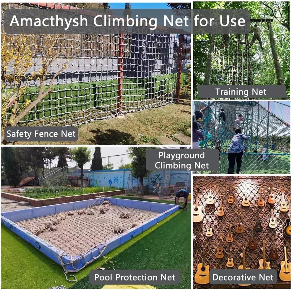 This versatile climbing cargo net is crafted from soft, durable polyamide fiber, designed to enhance your climbing experience while providing safety and support. The uniform mesh structure ensures protection, making it a perfect addition to your climbing frame or play area for kids. Each net knot is hand-woven, promoting even stress distribution and impressive tensile strength, which enhances its reliability for both indoor and outdoor applications.Whether you're looking to create a fun and adventurous play environment for children or seeking a practical solution for climbing activities, this climbing net meets your needs. The 10 mm diameter of the protective net and 15 cm grid spacing make it suitable for various uses, from playgrounds to home gyms.Please note that the actual color of the product may differ slightly due to display settings, and minor size variations may occur due to manual measurements. Choose this climbing cargo net to provide a safe and enjoyable experience for users of all ages, combining functionality with an inviting design.